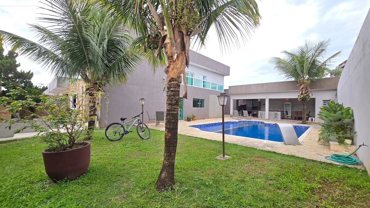 Viva momentos inesquecíveis neste lugar único e ideal para reunir famílias e amigos. São 5 suítes amplas e arejadas com Ar Condicionado Q/F e Ventiladores de Teto que acomodam muito bem até 26 pessoas. A casa conta com uma super piscina com cascata, hidro, rodeada por um exuberante jardim com gramado, palmeiras, quiosque, pontos para rede que, a noite, recebem uma linda iluminação LED colorida e conta com sala de TV , Sala de jogos com mesas de sinuca e pebolim, cozinha gourmet e ampla varanda.