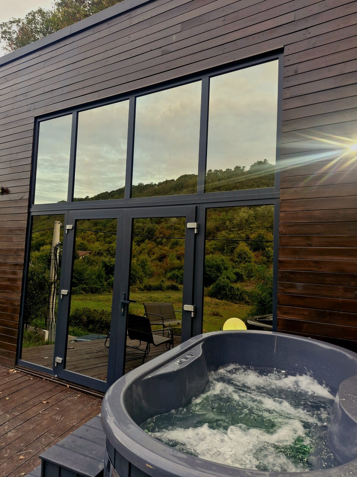 Transylvanian Farmstay is a woodcabin located on an ecological beef cattle farm. The cabin itself is on a 1.5 hectare fenced property in the vicinity of a 0.5 hectare fishing pond. The woodcabin with a has a big terrace, a natural recreational pond, a wooden hot tub and a dry sauna. On the neraby property you can see a few sheep, fallow deers and a poney grazing around. The cabin has a double bed and an extendable sofa so it's suitable for up to 4 people.
