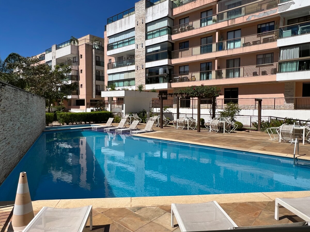 Premium dekorasiyalı, Condomínio Clube-də möhtəşəm quruluşa malik mənzil: üzgüçülük hovuzu, həyacan və yeməkxana, səhər yeməyi, nahar və şam yeməyi təqdim edən geniş restoran. Daxili və xarici məkanlarda Quadra de tennis, futbol meydançası, voleybol, buxarılar, istirahət zonası olan quru və buxar otağı, kinoteatr, 24 saat təhlükəsizlik və əla wi fi işarəsi. Ən yaxşısı E: Rio-de-Janeyrodan cəmi 60 km, Centro de Petrópolisdən 10 km, İtaipava və Korreasa 5 dəq. Qapıda avtobus və Uber seçimi ilə.