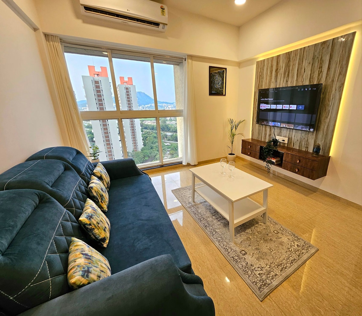 Mumbay Pune ekspress avtomobil yoluna və Köhnə Magistrala əla bağlantısı olan sevimli 1BHK. Mənzil 5-ci mərtəbədə lift girişi və öz-özünə giriş üçün rəqəmsal şkaf girişi olan yeni təmir olunub. Qonaqlamanız zamanı bütöv mənzilə sahib olacaqsınız. Məkan müasir dizayn və rahatlığın zərif qarışığını artırır, yaradıcılığı təşviq edir. Mənzildəki bütün məkanlarda böyük eyvanları olan gözəl mənzərə var. Wi-Fi və Power Back-Up ilə təchiz olunub.