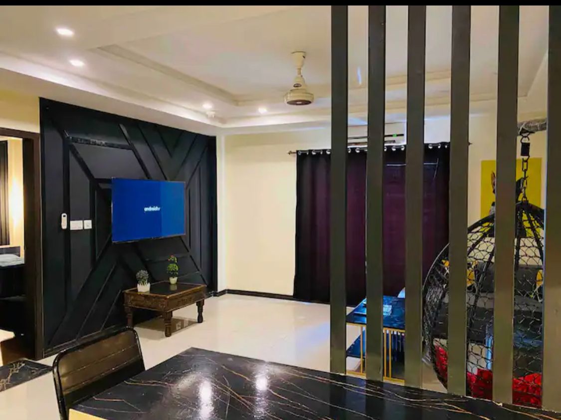 SkyPark One-da lüks 2BHK | Nəfəskəsici Baxışlarla Yaşayan Dizayner İslamabadın sakit təpələrinə baxan bu geniş dizayner mənzilində rahatlığa doğru addımlayın. 2 çarpayı, ayrıca eyvan, 65" Ağıllı TV, ultra yüksək sürətli Wi-Fi və tam mətbəxdən zövq alın. SkyPark One Food Court-dən yuxarıda, Expressway-dən 2 dəqiqəlik məsafədə yerləşir. Ailələr və ya işgüzar səyahətçilər üçün mükəmməldir. Müasir dekorasiya, ağıllı kilidlər, çevirici kondisionerlər və isti su rahat qonaqlamanı təmin edir. Qonaqlar üçün CNIC tələb olunur 18+. Siqaret çəkmək və şənlik keçirmək olmaz. İndi bron edin.