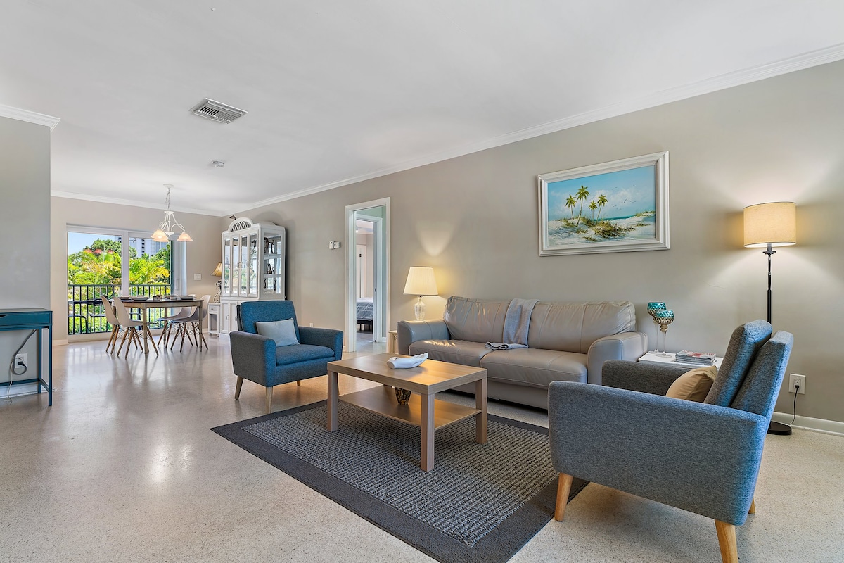 Artfully renovated mid-century modern private guest suite located in a charming, old Florida neighborhood nestled along the intracoastal waterway. Enjoy peek-a-boo views of the intracoastal waterway from the front porch and smell the ocean breezes from your private, exclusive use back yard space. This stylish Studio offers a queen size sleeper sofa, Smart TV, breakfast bar, private bath w/shower and is walking distance to Publix, restaurants and one of the areas best snorkeling beaches.