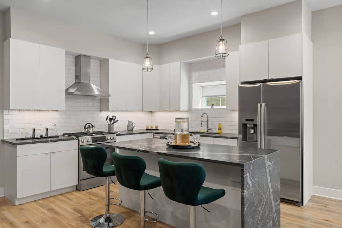 3 Bedroom, 2 Bath 3 Queen Beds Whether you’re in Philly for history, business, or a weekend escape, this spacious three-bedroom makes it easy to settle in. You’ll have a full kitchen, in-unit washer/dryer, a dedicated workspace, and a comfortable layout for groups—plus access to standout building amenities like a gym, coworking space, and community lounge—right in Old City near Independence Mall. Note: Some units of this type are located below an event space and may experience noise on some Th