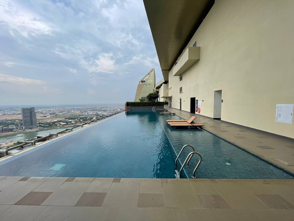 Located in the Best Area in Phnom Penh. Accessible to Popular places such as Royal Palace, Riverside, Local Markets, Shopping Mall (AEON/Soho Mall) & Naga Casino (1 min walk away) Mega 55 storey high Residential Building with Shopping Mall Great Space, apartment is 60sqm in Floor area. Fully Air-condition Fully furnish with amenities, washer/dyer & ironing set, TV & etc. Kitchen full set up with cooking & dinning set. Amazing facilities -Infinity Pool + Indoor GYM Daily Cleaning Good WIFI