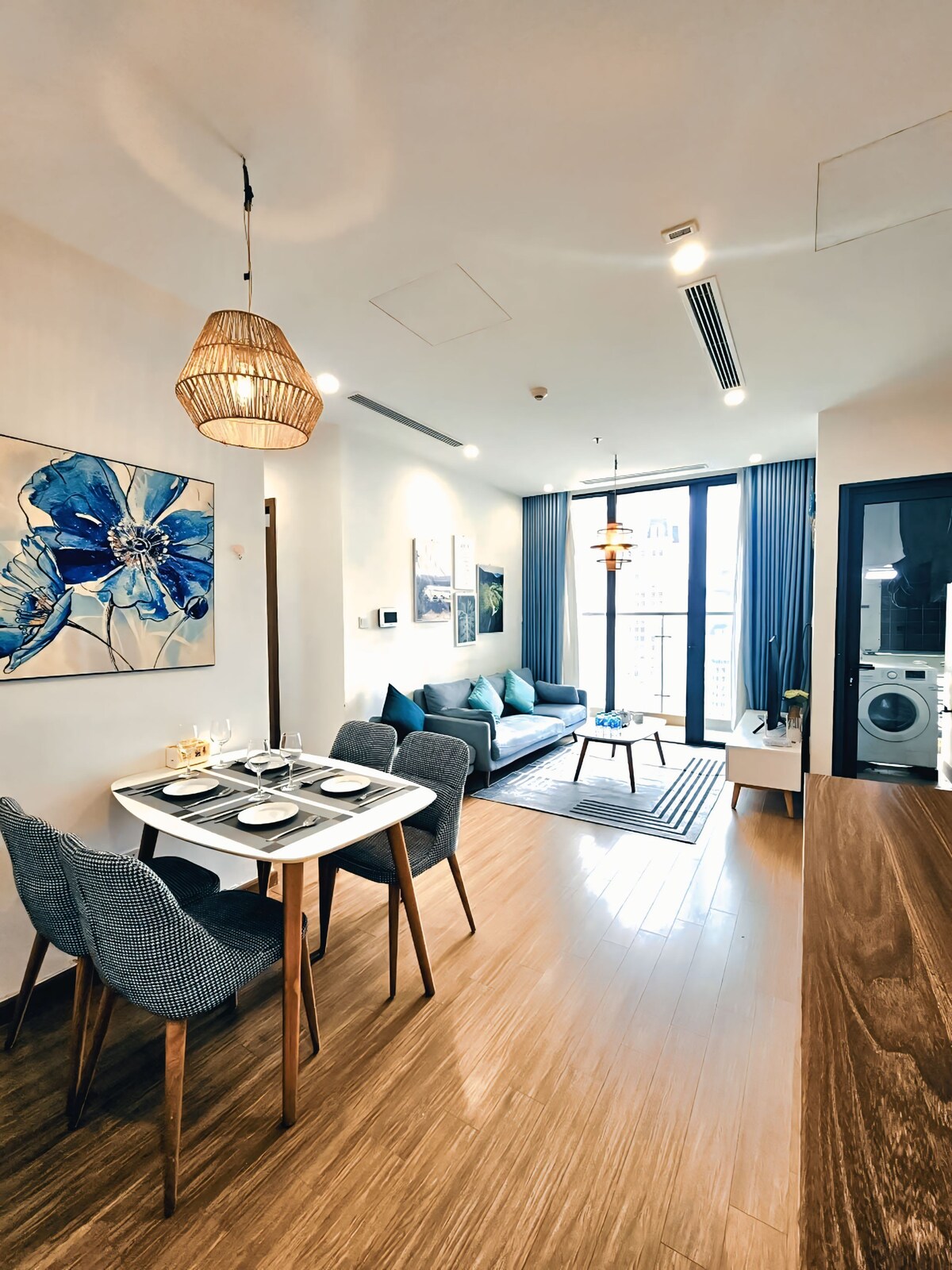 High-end apartment at Vinhomes Smart City with full amenities for couples, tourists or business travelers. Here you will rest and relax in a peaceful, luxurious space. Utilities include: 1. Indoor swimming pool 2. Outdoor swimming pool (seasonal) 3. Gym 4. Working Space 5. Shopping and entertainment at Vincom Mega Mall. 6. Check-in and take virtual photos at Japanese Garden 7. Stroll between the blue sea and white sand in the heart of Hanoi. 8. BBQ Party