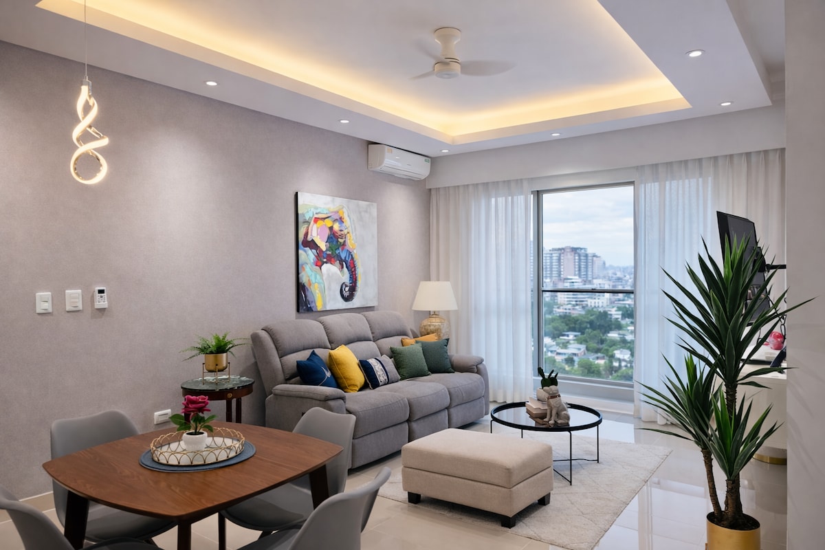 Piantininin eksklüziv ərazisində, Santo-Dominqonun ən yaxşı məkanlarından birində yerləşən bu qonaqlama yerində üslubdan zövq alın. Bütün mənzil, xidmətlər daxildir. Blue Mall-un sadəcə 2 küncü və Akropol Mərkəzinin bir küncü. Biznes, alış-veriş, qida turizmi və ya sadəcə istirahət üçün olmasından asılı olmayaraq. Rahat və sakit qonaqlama, tavanda Pikuzzi, İdman zalı və uşaqlar üçün oyun zalı olan Sosial Məkandan zövq alın. Privado parkinqi pulsuzdur! Pulsuz yüksək sürətli ✅️ Wi-Fi.