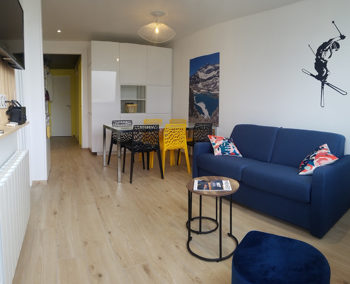 2023-cü ildə xizək yamaclarının ətəyində 19m2 tamamilə təmir edilmiş bu qonaqlama yerinin füsunkarlığını kəşf edin və səliqəsiz və müasir üslubu ilə yürüyüş edin. Xizək liftləri və mağazalarına ən yaxın olan II Engaly Residence KLUBUNDA. Bir gün xizək sürdükdən sonra çox gözəl vanna otağı. Məxfilik üçün sürüşən qapı. Mövcuddur: Soba Mikrodalğalı soba İnduksiya bişirmə vərəqəsi İsti su çaydanı. Raclette dəsti Dəsmal feni Televizor 102 sm