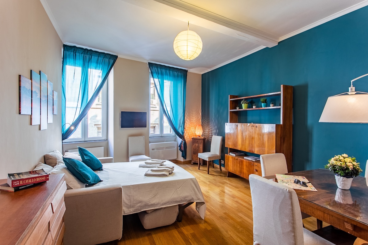 It's a gem... and it will be your NEST OF LOVE FEW METERS FROM TREVI'S FOUNTAIN AND SPANISH STEPS. Romantic and delightful suite in a typical Roman style with a delicious double bedroom, a small living room with sofa bed and TV. Bathroom with shower and full equipped kitchen. A true oasis of peace within the heart of historic center of Rome. UNLIMITED FREE WIFI, NETFLIX , ALEXA , AIR CONDITIONING, SOUNDPROOFED WINDOW, WASHING MACHINE AUTONOMOUS HEATING USER FRIENDLY COMPIUTER WORK PLACE