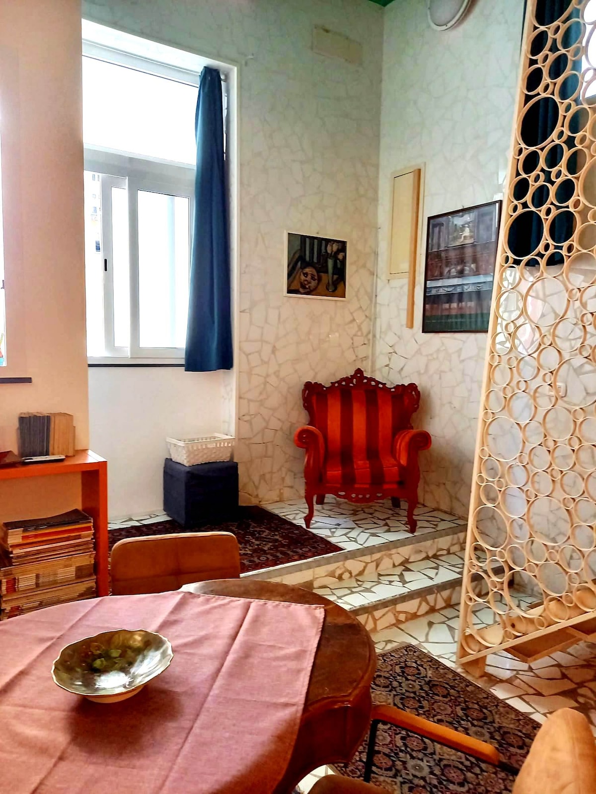 Tarixi, bədii və folklor məkanlarından atılan daş olan qədim Neapolda qonaqlamanın cazibəsi............ "Tarixi Mərkəzin mərkəzində, YUNESKO-nun Ümumdünya İrsi elan etdiyi geniş bədii və memarlıq irsi ilə. Evin strateji mövqeyi üçün ətrafınızdakı bütün məsafəni qət edərək əsl Neapol ilə tanış ola bilərsiniz... "Kafedral, I Dekumani, Neapol metrosu, qədim kilsələr, pizzerialar, sənət adamları və məşhur S. Qreqorio Armeno (nativlik səhnələrinin və çobanların yolu) bir neçə addım uzaqlıqdadır. 600 saylı binanın birinci mərtəbəsində yerləşən otaqlar qonaqlamanı qonaqlarınız üçün rahat və rahat etmək məqsədilə zövq və zərifliklə təmir edilib. Metrolar, hava limanı, qatar stansiyaları, liman və avtomobil yolları asanlıqla əldə edilə bilər. Zərif burgundiya rəngində tamamlanmış bu romantik evdə dörd saata qədər yatır. Fransız divan çarpayısı və tam təchiz olunmuş mətbəxi olan yemək sahəsi olan dadlı və geniş qonaq otağından ibarətdir. Burada ikinəfərlik çarpayı və duşlu vanna otağı olan mezzanin var. Mənzil hər bir komfort, televizor, simsiz əlaqə, müstəqil istilik və kondisioner sistemi ilə təchiz olunub.