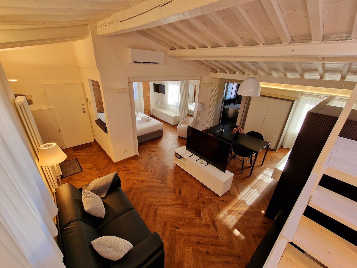 Tarixi binada yerləşən eksklüziv loft, xammal və müasir detalları birləşdirən zərif sənaye üslubunda tamamilə yenilənib. Burada unikal atmosfer hökm sürür və Florensiyanın özünəməxsus cazibəsindən imtina etmədən müasir rahatlıqlar axtaranlar üçün mükəmməl seçimdir. Florensiyanın ən gözəl bölgələrindən birində yerləşən bu məkan canlı həyat, restoranlar, dəbli barlar və şəhərin tarixi guşəsinin sakitliyinin ideal birləşməsini təklif edir.