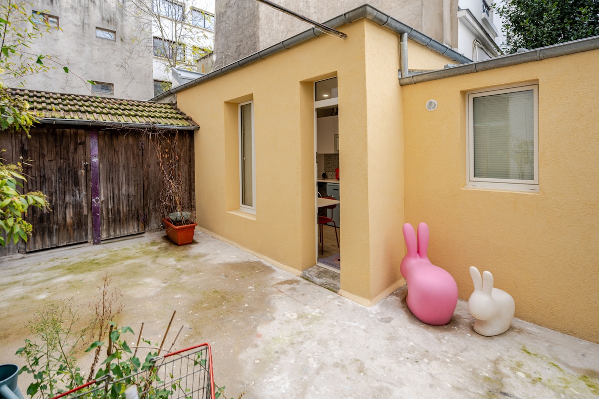 The studio (about 45 square meters) is located at the back garden of the main house. It is 12 minutes walk from the underground station (lines A4 and E4), 13 minutes away from center Paris and 30 minutes from Euro Disneyland. Shops and restaurants are within a walking distance. With an additional sofa-bed the studio can accommodate up to four people. The kitchenette makes it possible for guests to prepare their own meals. Breakfast includes fresh bread and croissants every morning.