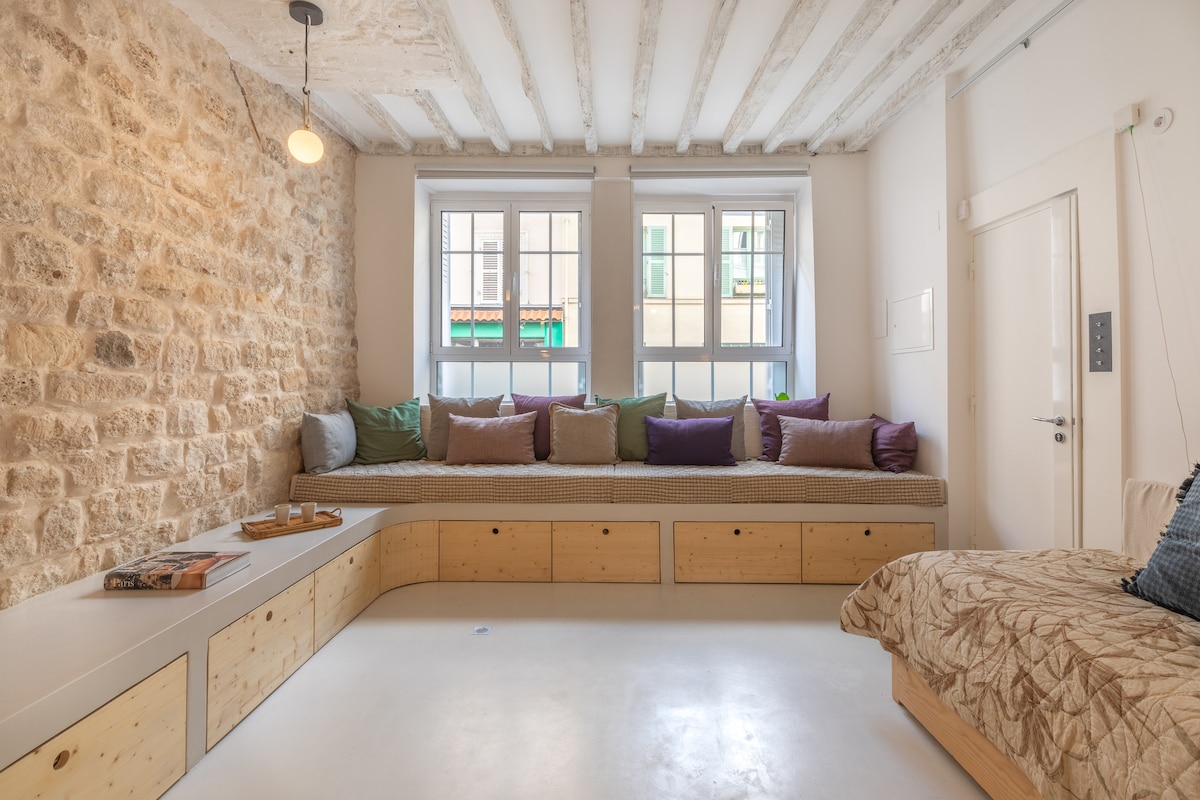20 m2 terrasda cakuzisi, eləcə də hamam kabinəsi və saunası olan 60 m2-lik gözəl mənzil. Bir evin 2-ci mərtəbəsində yerləşən, zövqlə təchiz edilmiş, cakuzisi, günəş vannası qəbul edən və asma kreslosu olan 20m2 terrasa baxan böyük körfəz pəncərəsi, təchiz olunmuş mətbəx, iki nəfərlik çarpayısı olan bir yataq otağı və 2 nəfərlik bir böyük panoramik konvertasiya divanı, hamam/sauna duş kabinəsi olan hamam otağı. Parisdə romantik bir an və tətil üçün mükəmməldir. *ŞƏNLİK və ya ŞƏNLİK QADAĞANDIR