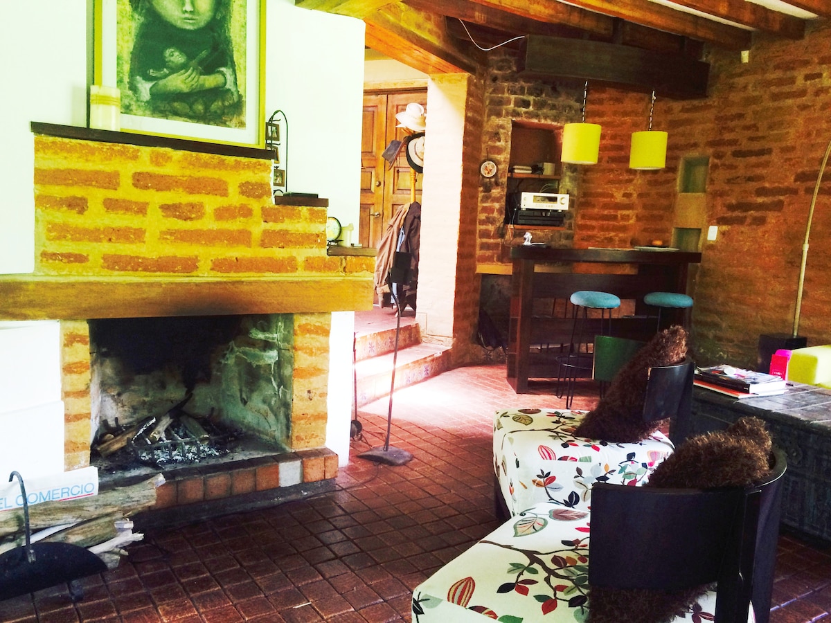 Alanga es una casa de campo muy acogedora y cómoda, ideal para relajarse por la belleza de sus jardines naturales, y para pasar en familia alejado del mundanal ruido con servicio de internet por fibra óptica de 700 Megas, y varias estaciones para tele trabajo. Ubicada junto al Santuario de Schoensttat en Alangasí, en las faldas del Ilaló a tan solo 40 minutos del Centro Histórico de Quito y a 35 minutos del aeropuerto internacional de Quito.
