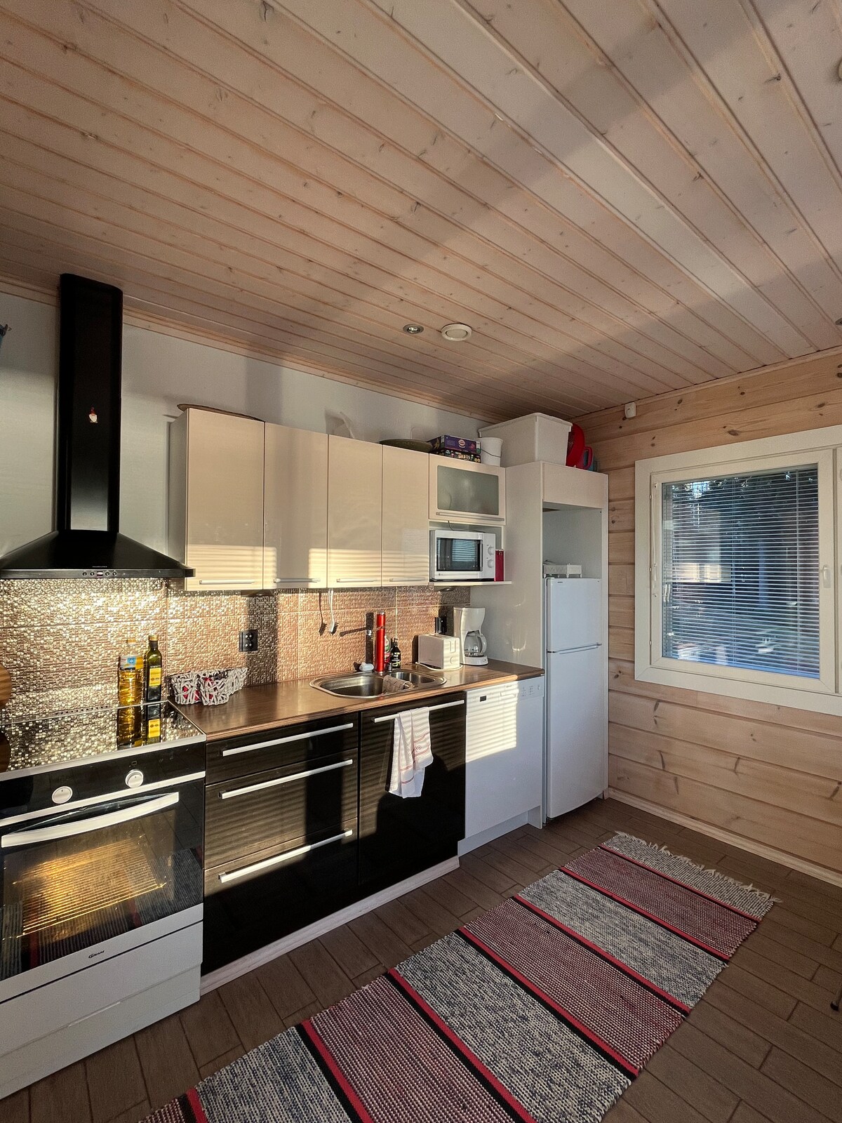 Kanavanrannalla tunnelmallinen ja viihtyisä paikka, jossa voit rentoutua takkatulta tai katon tähtitaivasta katsoen ja pelata monopolia tai lukea. Kesällä voit uida kanavassa tai sup-lautaillaan ja ihailla risteilyalusten ohi lipumista. Jäähdytys hoituu ilmalämpöpumpulla. Sup-lauta on yhdelle hengelle. Täällä saat myös jäätelöt pakkaseen tai grillata terasilla.