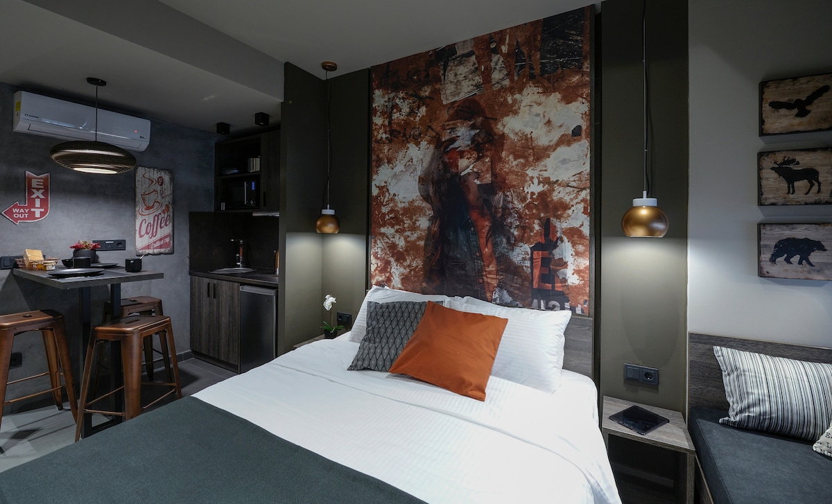Şəhərin tam mərkəzində, Thessaloniki köhnə şəhər bulvarının yanında yerləşən bu rahat və cəlbedici studiyada mükəmməl şəkildə gəzin. Biznesmen, eləcə də gənc cütlük və ya sadəcə səyahətçi üçün ağıllı seçim. Barlar, restoranlar, mağazalar ilə əhatə olunmuşdur; haqqında düşünə biləcəyiniz hər şey bir dəqiqədən az məsafədədir.