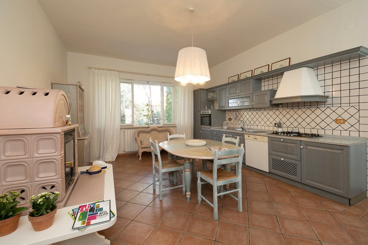 Dənizdən avtomobillə 20 dəqiqəlik məsafədə yerləşən təpələrdəki tipik Toskana fermasında yenicə təmir edilmiş mənzil. Burada 2 nəfərlik yataq otağı, rahat divan çarpayısı olan qonaq otağında rahat giriş, duş kabinəsi olan hamam otağı və tam təchiz olunmuş mətbəx var. Əmlakın bağında üzgüçülük hovuzu (iyun ayından) və barbekü olan taxta ceyran var. Mənzil kiçik qonaqları kotlet, stul, uşaq arabası, şüşə isti, gəzinti üçün bel çantası ilə təmin olunub. Wi-Fi, SAT TV