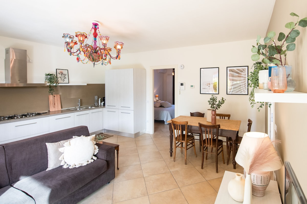 "La Gardoncina" villasında☀️ Bu mənzil fərdi evin birinci mərtəbəsində, Qardoncino kəndinin (Manerba del Garda) kəndindən aşağıda sakit yaşayış sahəsində yerləşir. Qonaqlar mənzilin ayrıca verandası🏊♀️ vasitəsilə evin geniş zeytun bağına💐 və gözəl yerdə yerləşən üzgüçülük hovuzuna birbaşa giriş əldə edir: sonuncu gölün heyrətamiz mənzərəsini təqdim edir, ikinci qonaq otağı kimi istifadə edilə bilər və öz barbeküləri var. 2020-ci ildə yenilənmiş, təzə, rahatladıcı hissləri var və tam təchiz olunub.