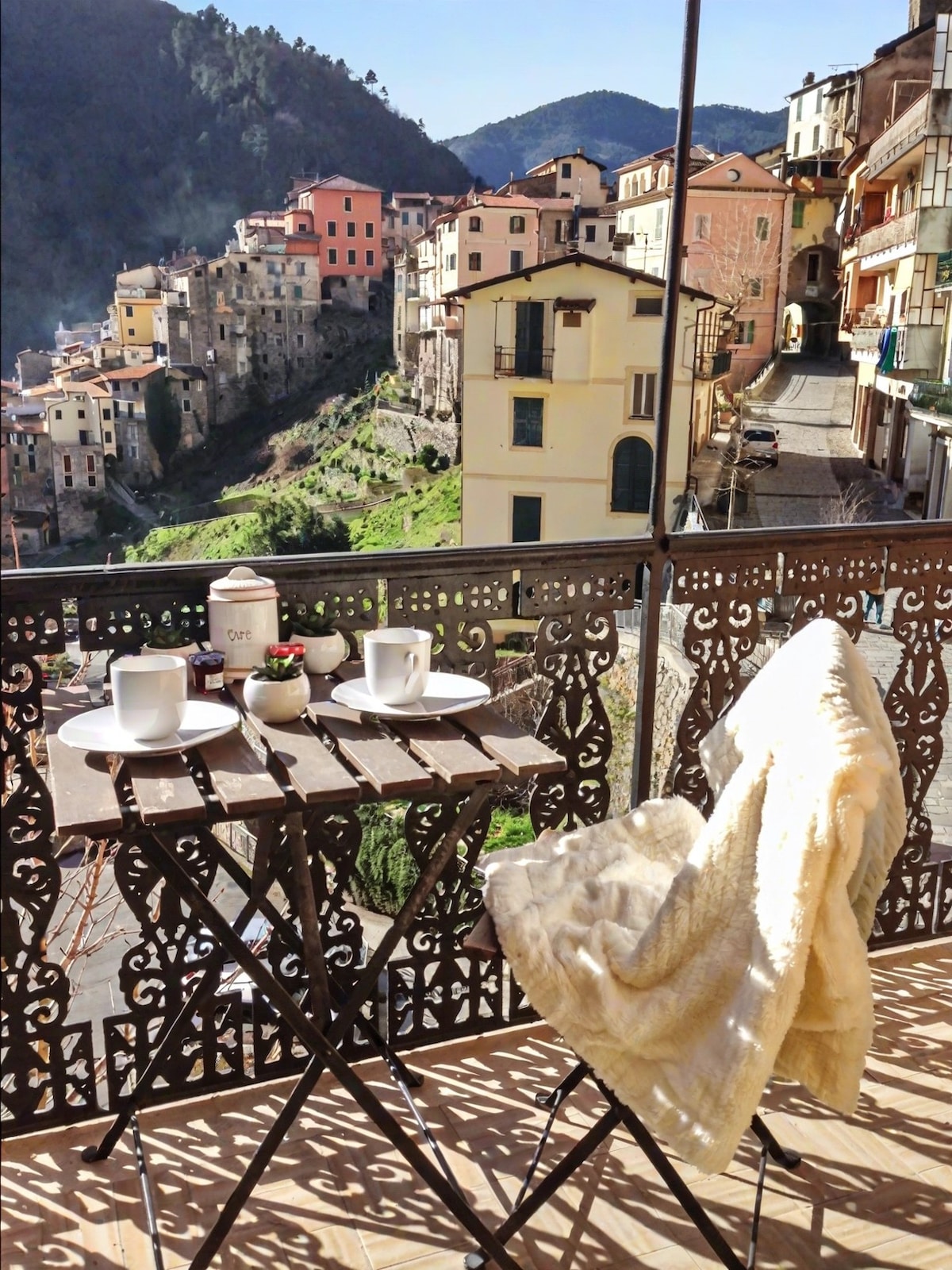 Välkommen till mitt charmiga byhus som ligger mitt i 1200-tals byn Apricale , 2 minuter från byns Piazza. Huset är byggt på höjden. Tre våningar med kök längst ner, vardagsrum på mellanplanet med bäddsoffa och utgång till balkong, högst upp vackert sovrum med underbar utsikt från franska balkonger. Huset har precis fått nytt tak öppet upp till nock för en härligt rymlig känsla. Köket har all tänkbar utrustning. Balkong med sol hela dagen. Följ mig gärna på : Instagram.com/casamianapricale