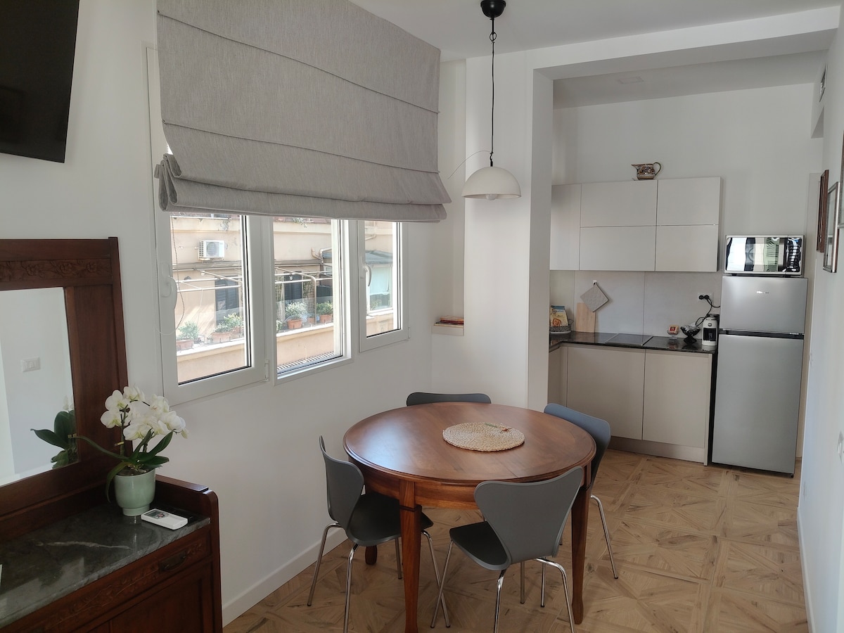 Rahat mənzilimizdə rahatlıq və müasirliyin mahiyyətini kəşf edin. Ayrıca terrasda və ya geniş duşu olan dəbli hamam otağında dincəlin, tam təchiz olunmuş mətbəx isə ehtiyaclarınıza cavab verir. Re di Roma Metro Stansiyasının A xəttindən cəmi 3 dəqiqəlik, C xəttindən, avtobus və tramvaylardan isə 7 dəqiqəlik məsafədə hər bir maraq nöqtəsinə asanlıqla çatacaqsınız. Qonaqlamanızı indi bron edin və Romada unikal təcrübədən zövq alın!