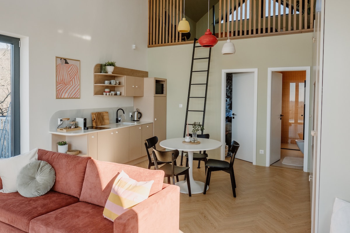 Our Danube bend cabin is the perfect place to escape from all that big city hustle and bustle. You can put your feet up in front of the fireplace after a hike in the nearby national park, warm up on our panoramic terrace after a swim down by the natural Danube shore, cook a hearty meal in the kitchen, on the charcoal barbecue, or grill in the nearby firepit. Nov '25 update: we've got a brand new terrace! NTAK reg. no.: MA20008352, type of accommodation: private