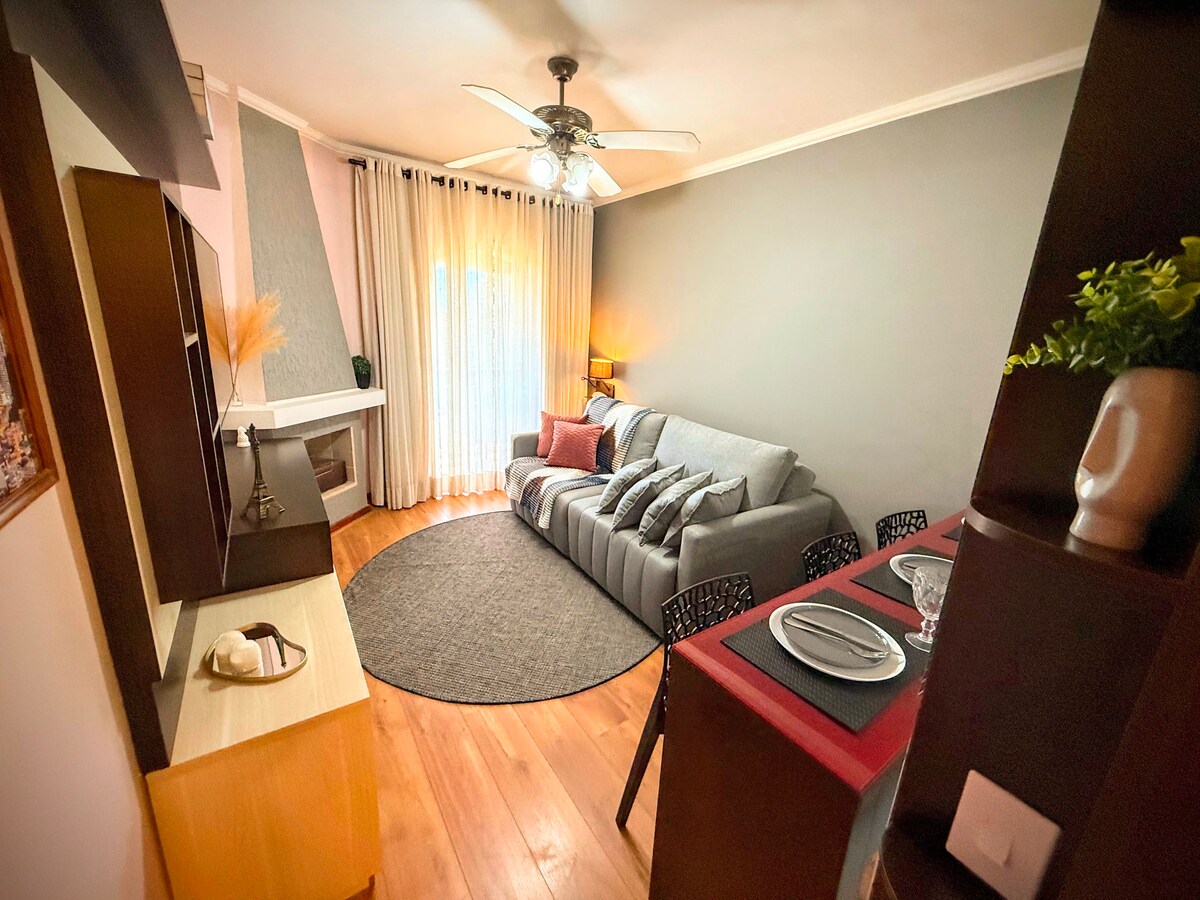 Discover this charming apartment in Campos do Jordão, located in Vila Everest, featuring balconies with beautiful views. Just 4 minutes by car or 12 minutes walking from the main tourist and dining area. Enjoy a fully equipped kitchen with all utensils, air fryer, coffee maker, and microwave, plus a comfortable bed. The gated community offers a lounge, TV room, gym, and parking. Close to supermarket, pharmacy, laundry, chocolate factories, and the famous Sans’souci café.