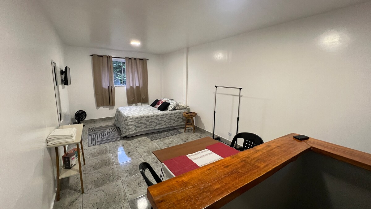 Parklanma yerli ayrıca • Kapivaridən 5 dəqiqəlik məsafədə Kampus-du-Jordao rahatlıq, praktiklik və əla mövqe axtaran cütlüklər və səyahətçilər üçün idealdır. ✔️ Yataq dəsti ilə rahat ikinəfərlik çarpayı ✔️ Wi-Fi sürətlidir ✔️ Ayrıca Hamam Otağı ✔️ Qab-qacaq, mikrodalğalı soba və minibar olan kompakt mətbəx ✔️ Stullu masa Strateji 📍 mövqe: Mərkəzi regionda, Kapivaridən cəmi 5 dəqiqəlik məsafədə.
