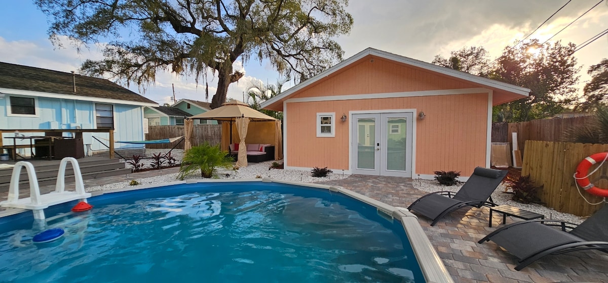 Hovuzu olan gözəl və parlaq 1900-cü il istehsalı olan orijinal Hind Daşları Çimərliyi banqalosu! 8-ci Ave çimərliyindən evin bütün komfortları ilə Across Gulf Bulvarı. Tropik bağ hovuzunda dincəlin, şəxsi tiki daxmada dincəlin , ərazini araşdırmaq üçün tramvayın. Bir çox mağaza və restoranlar piyada məsafədədir. Holiday Inn-də Splash Liman su parkı əyləncə günü üçün gəzinti məsafəsindədir! Unudulmaz qonaqlama var. Şəhər vergisi#1479