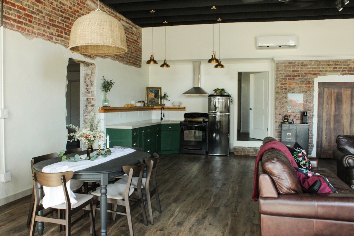 Historic bank built in the 1920's restored to it original beauty. Located 5 min from Hwy 45, 8 min from K&M shooting complex and 15 min from Henderson. This is a perfect location for anyone wanting a weekend getaway or a place to rest and reset. Our space reflects peace and quiet, plenty of books to leaf through, a fireplace to warm your feet and a fully stocked kitchen. Spacious bathroom with a beautiful clawfoot tub to soak in. Come get the unique experience of sleeping in bank vault!