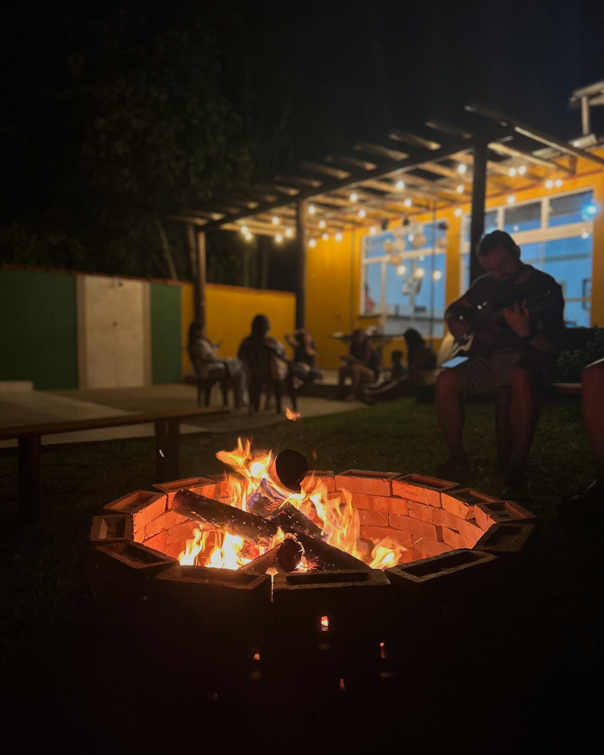 Təbiətlə əhatə olunmuş od çuxuru olan sakit dağ evi