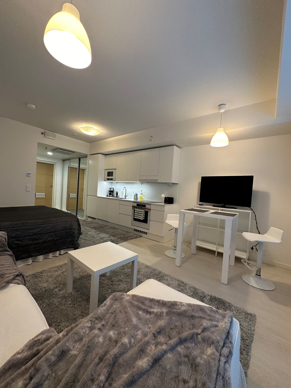 Rahat ikinəfərlik çarpayısı olan yataq otağı, geniş divan çarpayısı olan qonaq otağı, 2 ehtiyat döşək və ən kiçik çarpayı üçün uşaq çarpayısı olan saxlama otağı. Soyutma kondisioneri sayəsində mənzil yay istisində də rahat sərin ola bilər. Eyni binada əla restoran və yaxınlıqda bir çox yaxşı yeməkxanalar var. Teatrlar, filmlər, konsert zalları, üzgüçülük hovuzu zalı, boulinq zalı, Metso kitabxanasının yanında boulinq zalı, Särkänniemi və Gəzinti məsafəsində Arena. Qatar və avtobus stansiyaları üçün 15 dəqiqəlik piyada və ya tramvay çəkin.