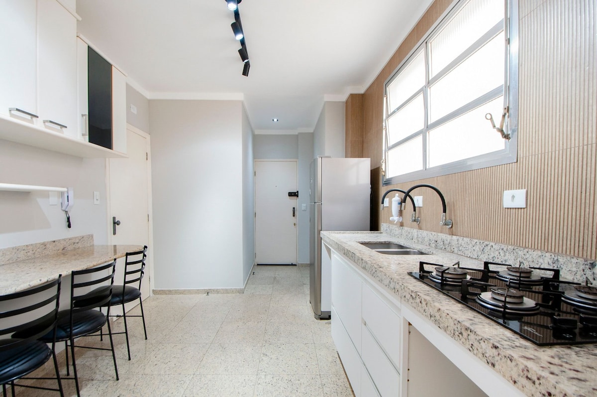 Dəniz mənzərəli düz 65 mts2, 150-179 sm ölçülü çarpayısı və kondisioneri olan 1 yataq otağı, hamam otağı, divan və tavan ventilyatoru olan böyük qonaq otağı, qonaq otağında televizor, balaca mətbəx, soyuducu, aşpaz sobası, soba, mətbəx üçün tam qab-qacaq, camaşırxana. Əlavə döşəyi var Çimərlik xidməti, qapalı hovuz, sauna, oyun otağı, pulsuz WiFi, idman zalı, qapalı qaraj, Pitangueiras çimərliyindən ən yaxşı halda 50 metr məsafədə, Morro do Malufun yanında. LaPlage Shopping və restoranların yanında.