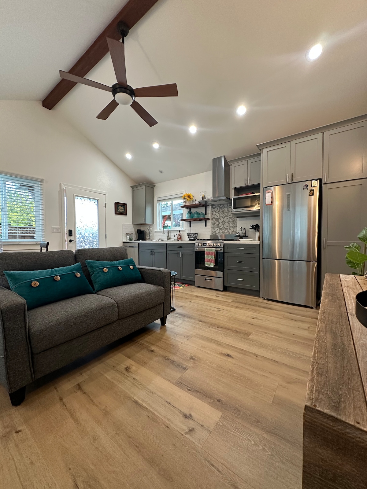 Chic downtown stay with self check-in, skylight, Netflix, near cafes & shops! ★ "Everything was quite new, uncluttered & impeccably clean." ☞ Walk Score 87 (Walk to cafes, dining, shopping etc.) ☞ 58” smart TV w/ Netflix ☞ Open concept living w/ skylight ☞ Fully equipped + stocked kitchen ☞ Self check-in (Smart Lock) ☞ Dedicated workspace ☞ Free street parking ☞ 600 Mbps wifi 2 mins → Downtown Pleasant Hill 6 mins → Downtown Walnut Creek 45 mins → San Francisco 40 min → Napa Wine Country
