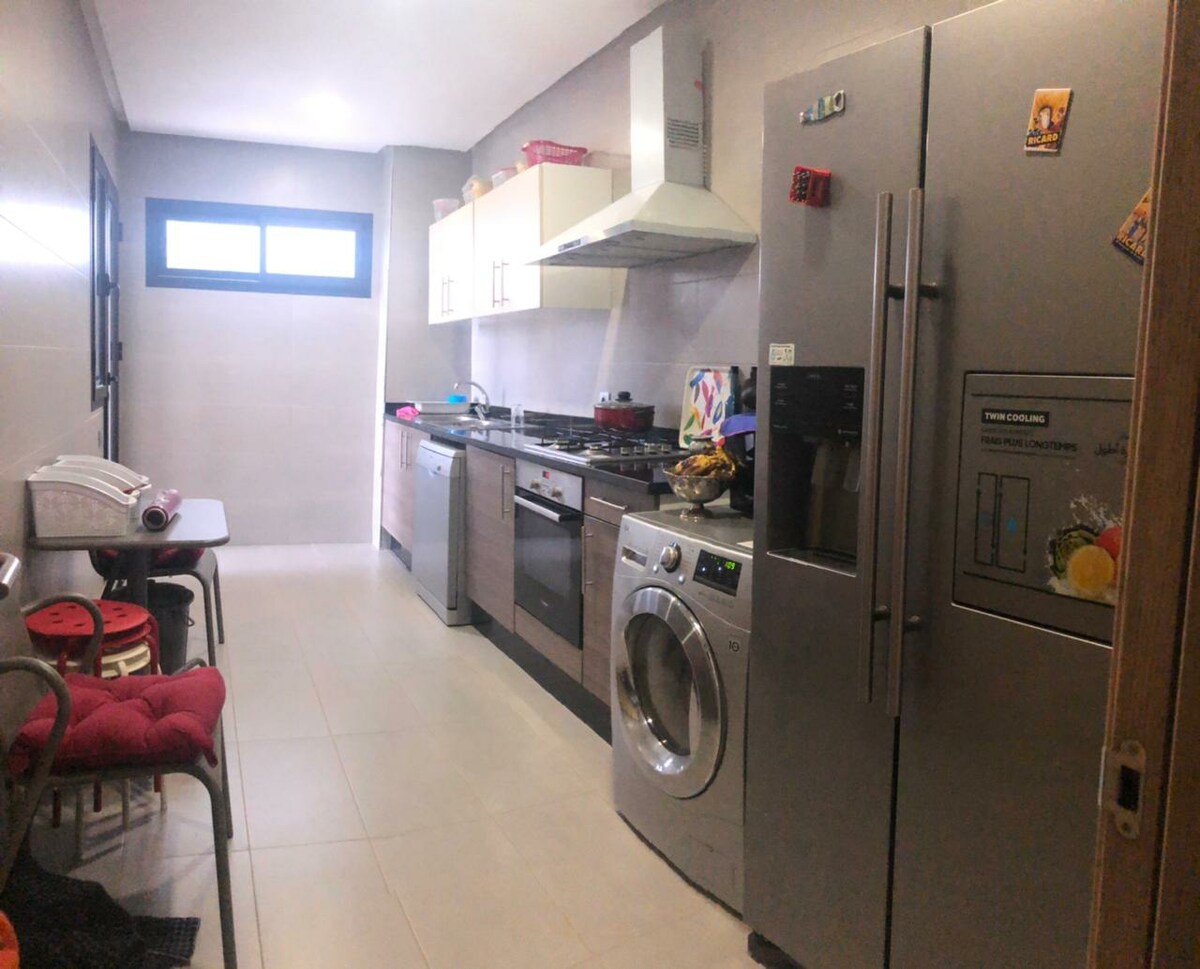 zirzəmidə pulsuz parkinqi olan gözəl duzlu yaşayış yeri, liftli yeni günorta, 24 saat təhlükəsizlik kamerası təhlükəsizliyi təmin edilir:dəsmallar,hamam xalatı, döşəkağılar,yastıqlar,ədyal. tt ، Spa، nəqliyyatı,restoran,bank... iqamətgahın ətəyində .marina de salé 7 km məsafədə ,Rabat 8 km məsafədə, Duz Rabat Hava Limanı 20 dəqiqə məsafədə. özünüzü evinizdəki kimi hiss edəcəksiniz və məkanın mükəmməl təmizliyindən razı qalacaqsınız. cütlüklərə Mərakeş qanunlarına əsasən evlənməyə icazə verilmir