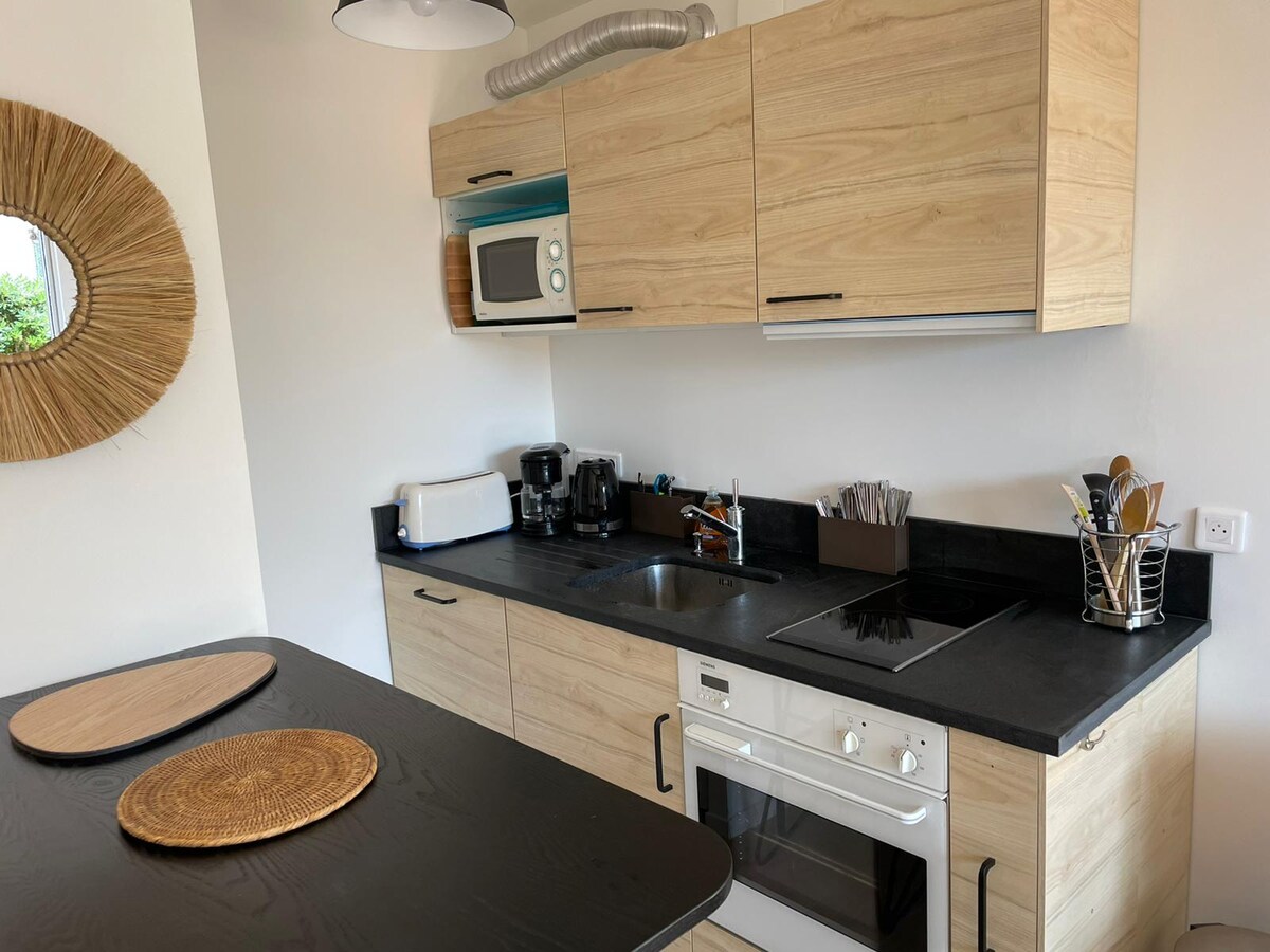Tam təmirli ailə mənzili, ideal olaraq Pesquiers çimərliyindən 10 m və Hyères Limanından 800 m məsafədə yerləşir, mağazaları (Supermarket 8-dən 8-ə qədər, çörək, Librairie Presse, Aptek) və restoranları. 30m2 + 30 m2-lik bu bağ sahəsi kiçik təhlükəsiz, sakit və rahat dənizkənarı yaşayış yerinin birinci mərtəbəsində yerləşir. Hyères Hava Limanı təxminən 2 km uzaqlıqdadır və daha aktiv olan şəxslər üçün onun girişinə piyada çatmaq mümkündür. 2 ulduzla qiymətləndirilən qonaqlama **