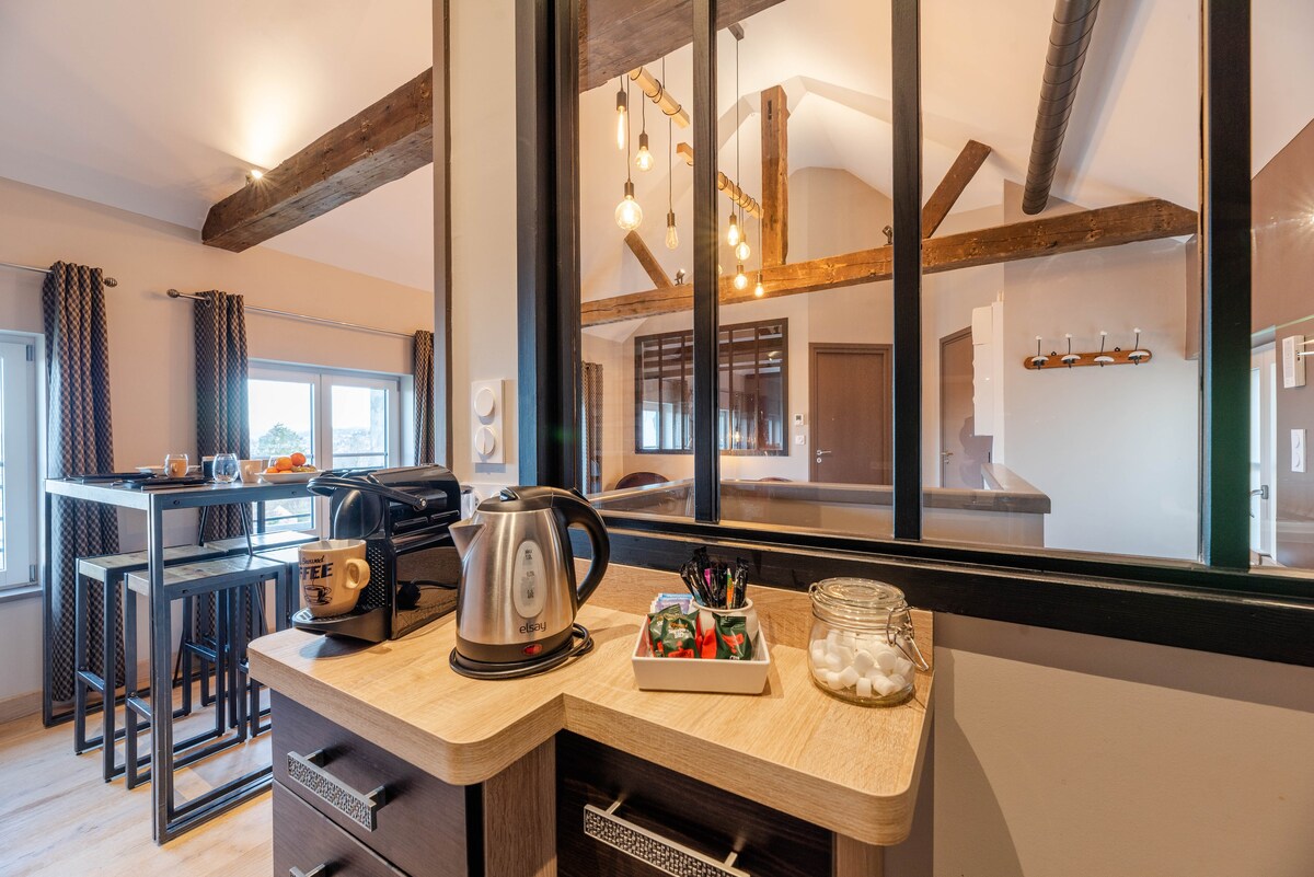 Honfleurun mərkəzində, limandan 10 metr məsafədə və Place Sainte Catherine-dən 2 dəqiqəlik məsafədə yerləşən bu gözəl təmir edilmiş studiya mənzilini kəşf edin. Bütün şəhərin heyrətamiz mənzərəsi olan böyük cənub tərəfdəki balkondan zövq alın. Kraliça ölçülü çarpayı 160x200, təchiz edilmiş və təchiz olunmuş mətbəx, müasir hamam otağı. Pulsuz parkinq 500 m məsafədədir. PMR lifti ilə sakit və təhlükəsiz yaşayış yerində yerləşir. Uyğunlaşan giriş vaxtları. İki nəfərlik mükəmməl qonaqlama üçün əladır.