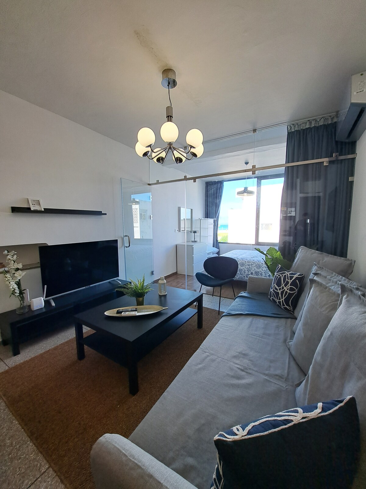 Réveillez-vous face à la Méditerranée 🌊 dans une suite élégante sur la corniche de Tanger, à Malabata. Idéale pour une escapade romantique ou un séjour détente, notre studio parfaitement équipé vous accueille à deux pas de la plage, dans un cadre cosy et moderne. Ce que vous allez adorer : - 🌊Vue mer de la chambre - 🏝️ Accès plage à pied en 1min - 🖥️ Wifi, Smart TV, cuisine équipée - ☕️ Café, thé & eau à l'arrivée - 🚉 Gare TGV & Centre ville à 5 min - 👤 Gardien disponible 24h/24
