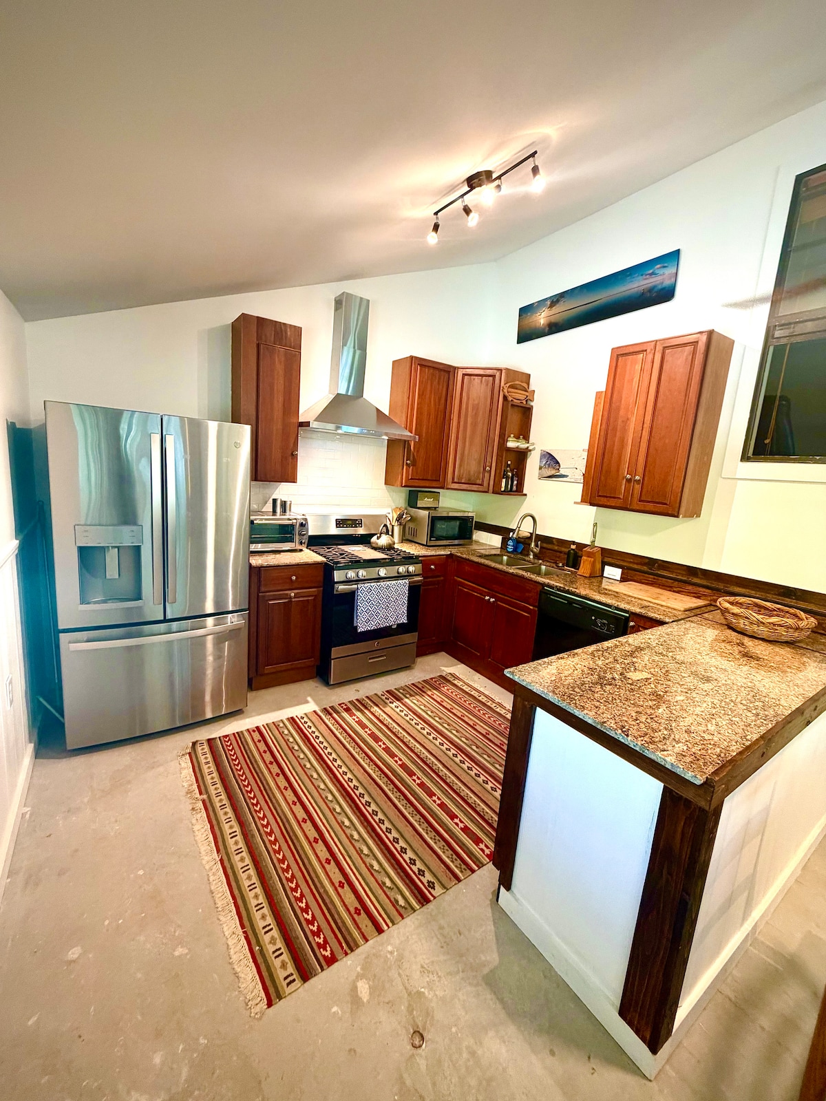 Relax with the whole family at this peaceful place to stay. World class fishing opportunities, with the all the creature comforts you would want. Ample space to relax, unwind, and recoup. Full kitchen upstairs and down stairs with multiple options to grill you catch of the day. Property does have an ice machine.
