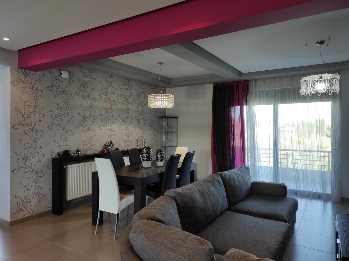 Fully renovated and modern apartment located next to the beach that you can visit with only 2 minutes walking. You can enjoy your stay and have fun with friends or family, right next to beautiful and fully organized beach. Lot's of restaurant's and beach bar's in the neighbοrhood will offer you a pleasant vacations. Not far from the center of the town that you can visit on foot or bicycle.