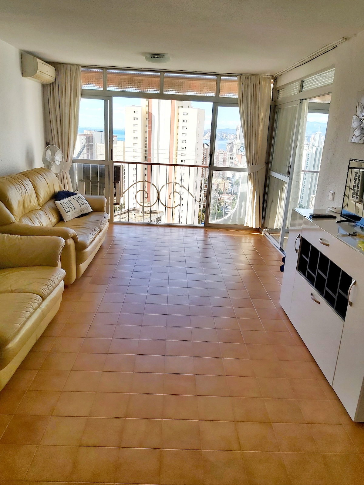 Benidormdakı Poniente çimərliyinin möhtəşəm mənzərəsi olan rahat 1 yataq otaqlı mənzil. 300Mb/s WIFI. Mətbəxi olan qonaq otağı, müasir tavan ventilyatoru olan iki yataq otağı, Mərmər vanna otağı və 22m² terras-solarium. Qonaq otağında kondisioner var. Urbanizasiyada Tossal de La-Kalanın yuxarısında yerləşən və bütün Benidorm və Cala de Finestrat çimərliklərinin unikal panoramik mənzərəsi olan üzgüçülük hovuzu (yalnız yayda açıqdır) var. Mənzil çimərliklərdən 800 m aralıda yerləşir.
