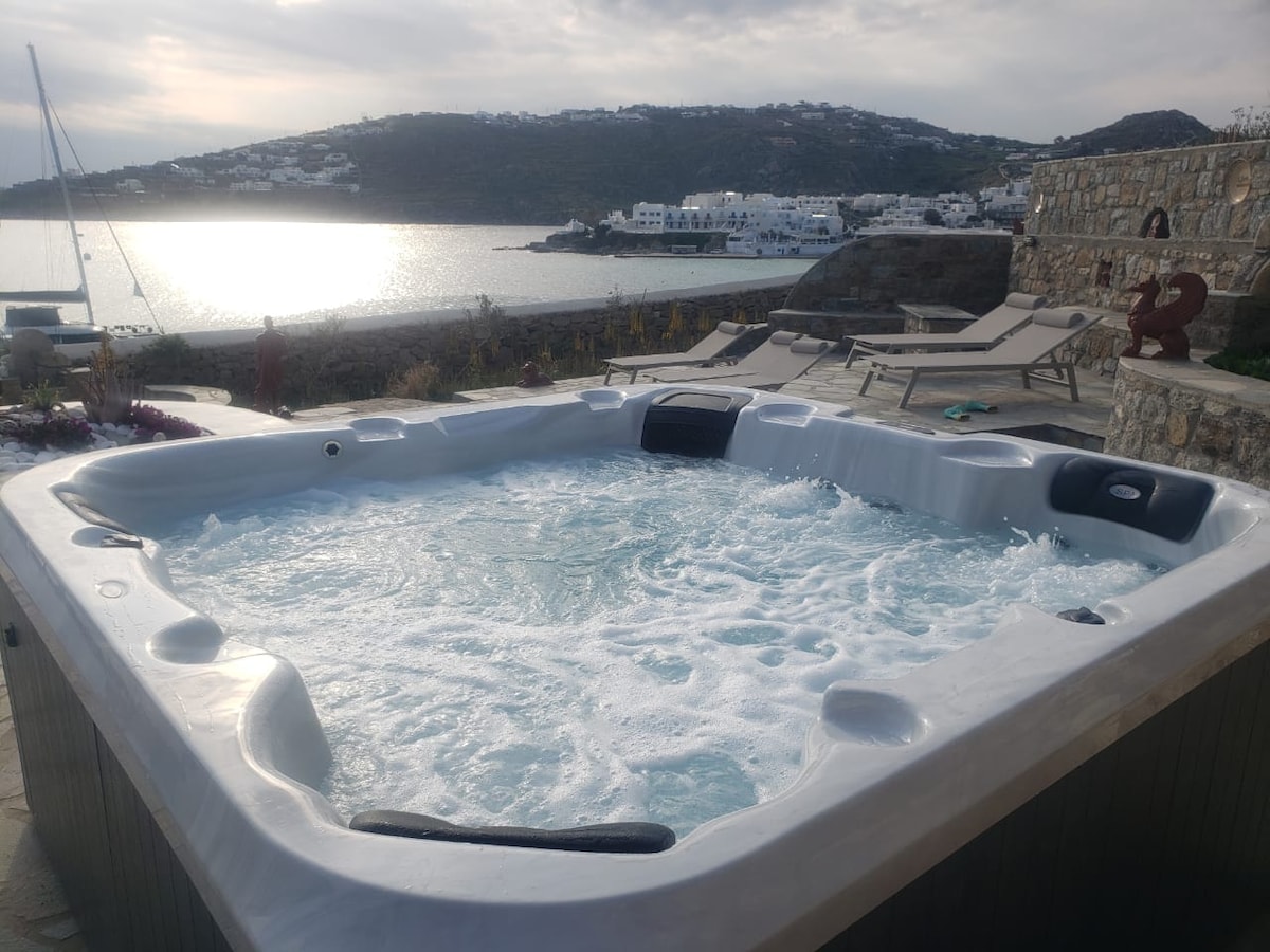 Enjoy Aegean sea views from stylish Deluxe Suite in Mykonos Town ("Legends in Town"). Designed by award-winning architect. Have a sip of wine at Private terrace with jacuzzi during the sunset. Relax on King bed with a high-quality mattress. Explore Mykonos town restaurants and boutiques within a short walk Highlights: * Stylish Sea Views * Jacuzzi on the Terrace * King Bed, High-Quality Mattress * Central but Quiet * Beautiful sunsets