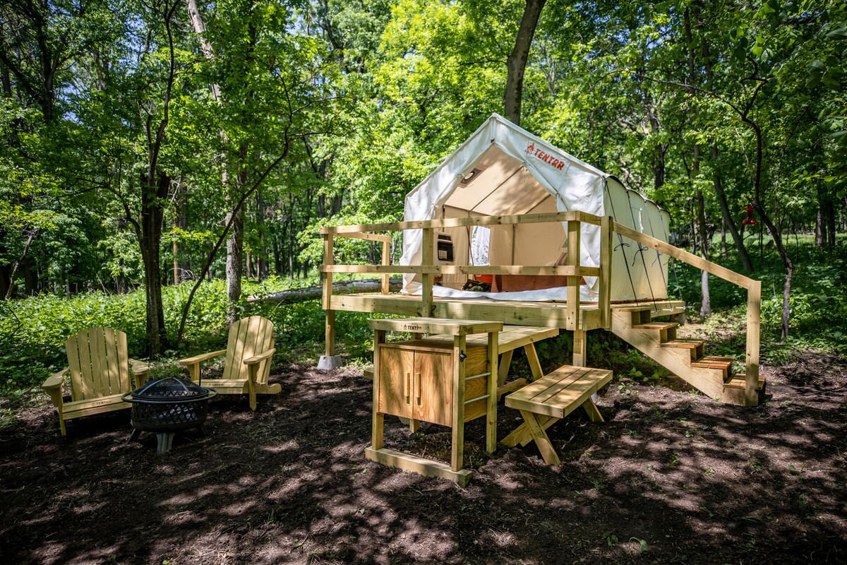Nestled Nook-un ən yeni qlempinq ekspansiyası. Bu ucsuz-bucaqsız meşəlik gəzintisi Manhettenin öz Tuttl Krik gölünə baxır. Həyatın dəbdəbələrini qoruyaraq bu romantik məkanın xoş mühitindən zövq alın. Çadırda 150-179 sm çarpayı, qəhvə barı, elektrik, bitişik hamam, 11,35 litr təmiz su tutan günəş enerjili duş, 128 metrlik gəzinti ilə gölə çıxış və göl üzərində nəfəskəsici günəş doğmaları var. Bill Sneyder Ailə Stadionundan və Tutt Krik Ştat Parkından bir neçə dəqiqəlik məsafədə.