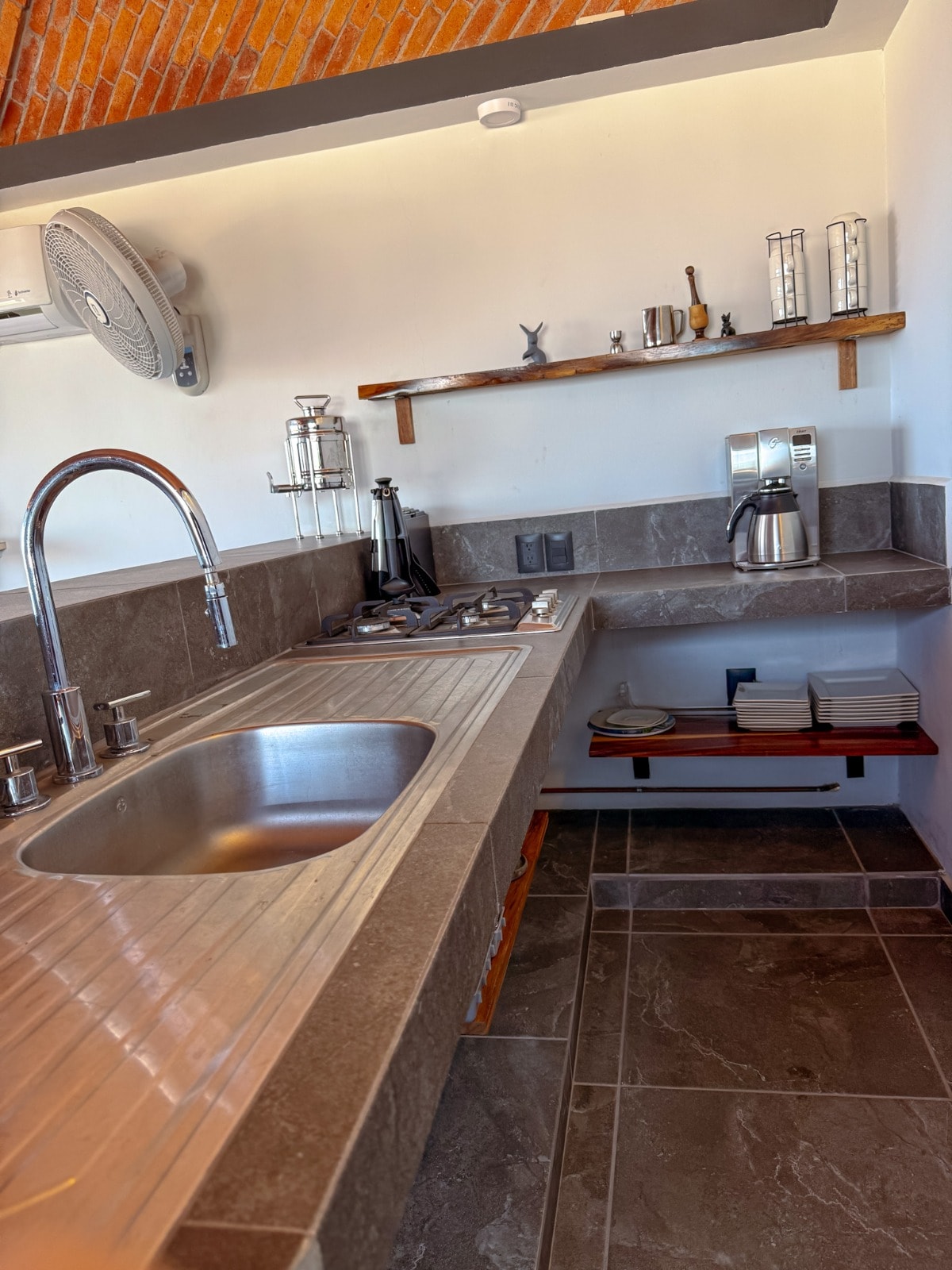 150-179 sm ölçülü çarpayısı, ağıllı televizoru, kondisioneri, tavan ventilyatoru, mətbəxi, hamam otağı və ayrıca cakuzisi olan rahat süita. Şəxsi cakuzinizdən şəhərin, okeanın və dağların panoramik mənzərəsini düşünərək gün batımından zövq alın və fikrinizi rahatlaşdırın. Çimərlikdən 7 dəqiqəlik məsafədə yerləşən Punta Zicatela, əsas sörfinq məkanı, restoranlar, barlar və ticarət zonasındayıq. Hər şeyə yaxındır, lakin şənliyin səs-küyündən uzaqdır. Starlink internetimiz var.