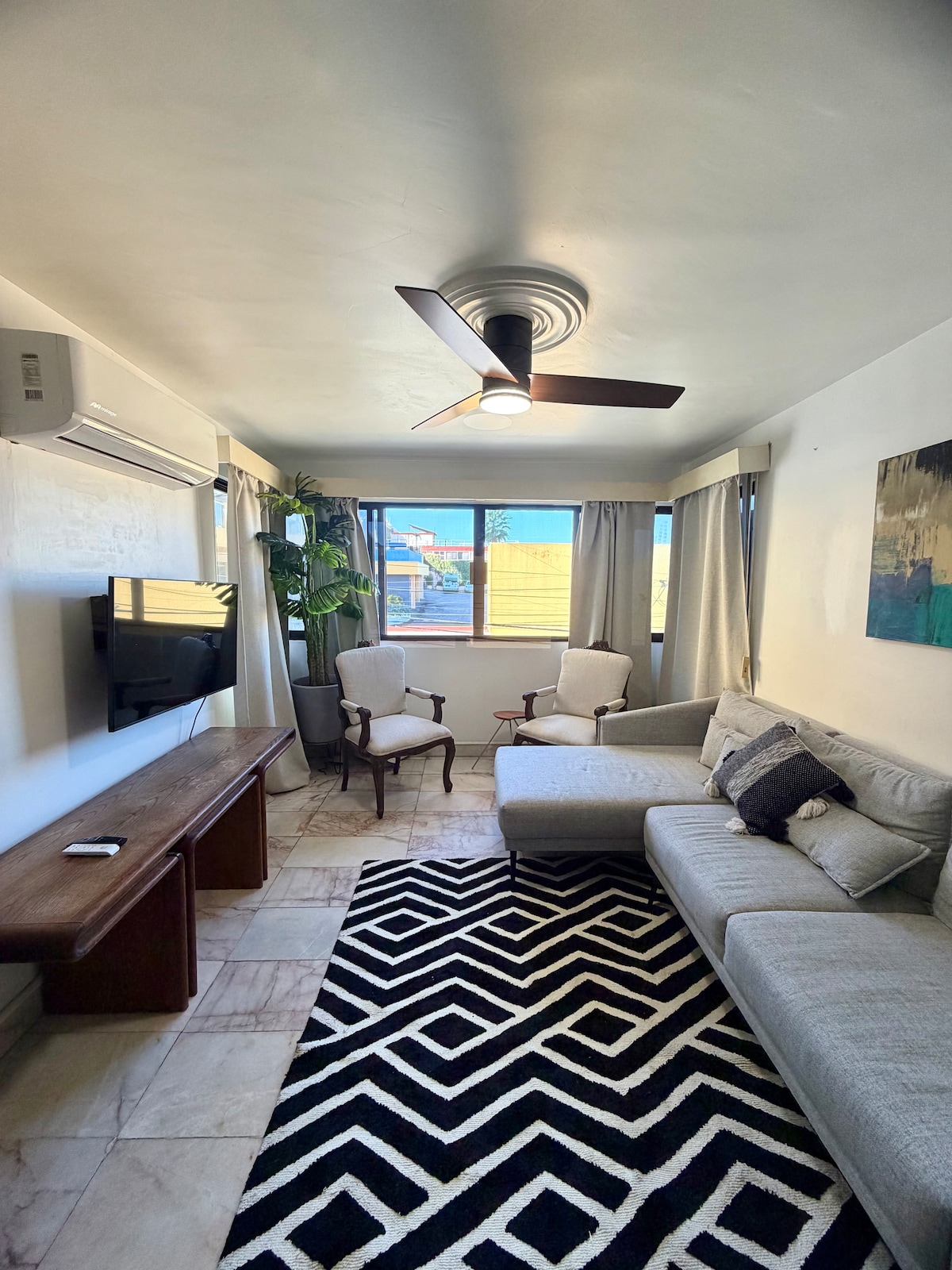 Fasilə verin və bu sakit mənzildə dincəlin. Gözəl Mazatlan qürublarından zövq ala biləcəyiniz çimərlikdən və gözəl Malekondan cəmi iki blok. Tarixi mərkəzə, maşadoya, ən zəngin və işlək restoranlara və ən gözəl çimərliklərə yaxın olacaqsınız.