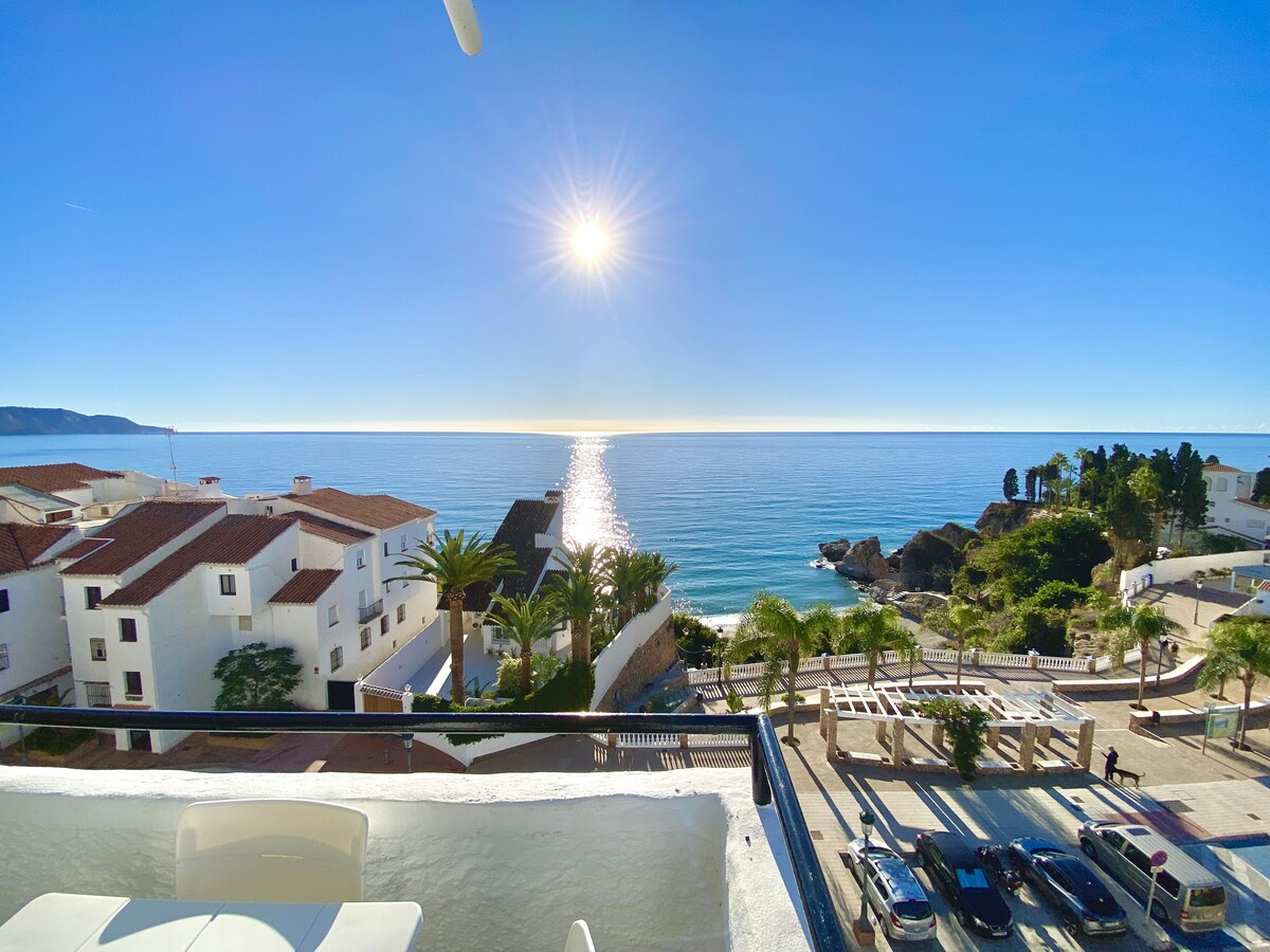 Apartamento en primera línea de playa recién reformado, de 1 dormitorio, baño en suite, sofá-cama, terraza con vistas al mar y al jardín, piscina comunitaria abierta todo el año, Wifi y TV por cable gratuitos, situado en pleno centro de Nerja, a 3 minutos andando del Balcón de Europa, y de las playas de laTorrecilla y El Salón, pero en una urbanización tranquila. Ideal para una persona, parejas, con 1 niño. Totalmente equipado.