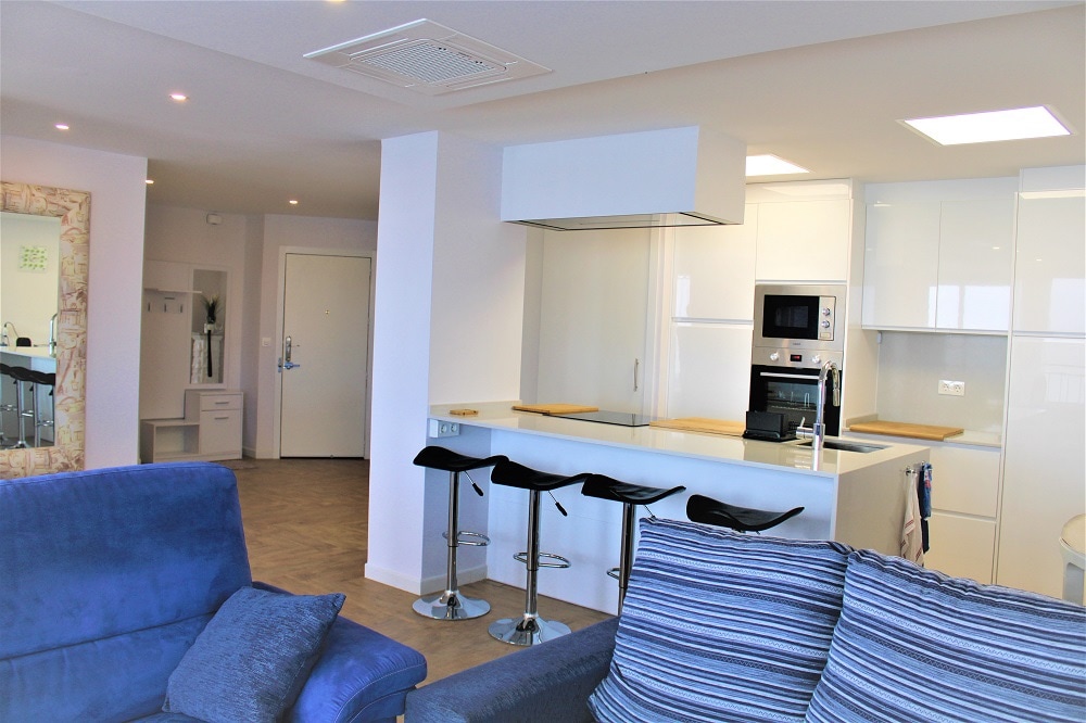 Dəniz kənarında penthaus! Spa vannası və barbekü və s. ilə öz dam terrası. İki yataq otağı və iki hamam otağı ilə yüksək standart. Qonaq otağına açılan açıq planlı tam təchiz olunmuş mətbəx. Dənizin yanında uşaqlara uyğun ərazi. Ərazidə üç hovuz (bir qızdırılan) və dörd hidromasaj hovuzu var. Padel kortu, basketbol, stolüstü tennis və idman zalı.