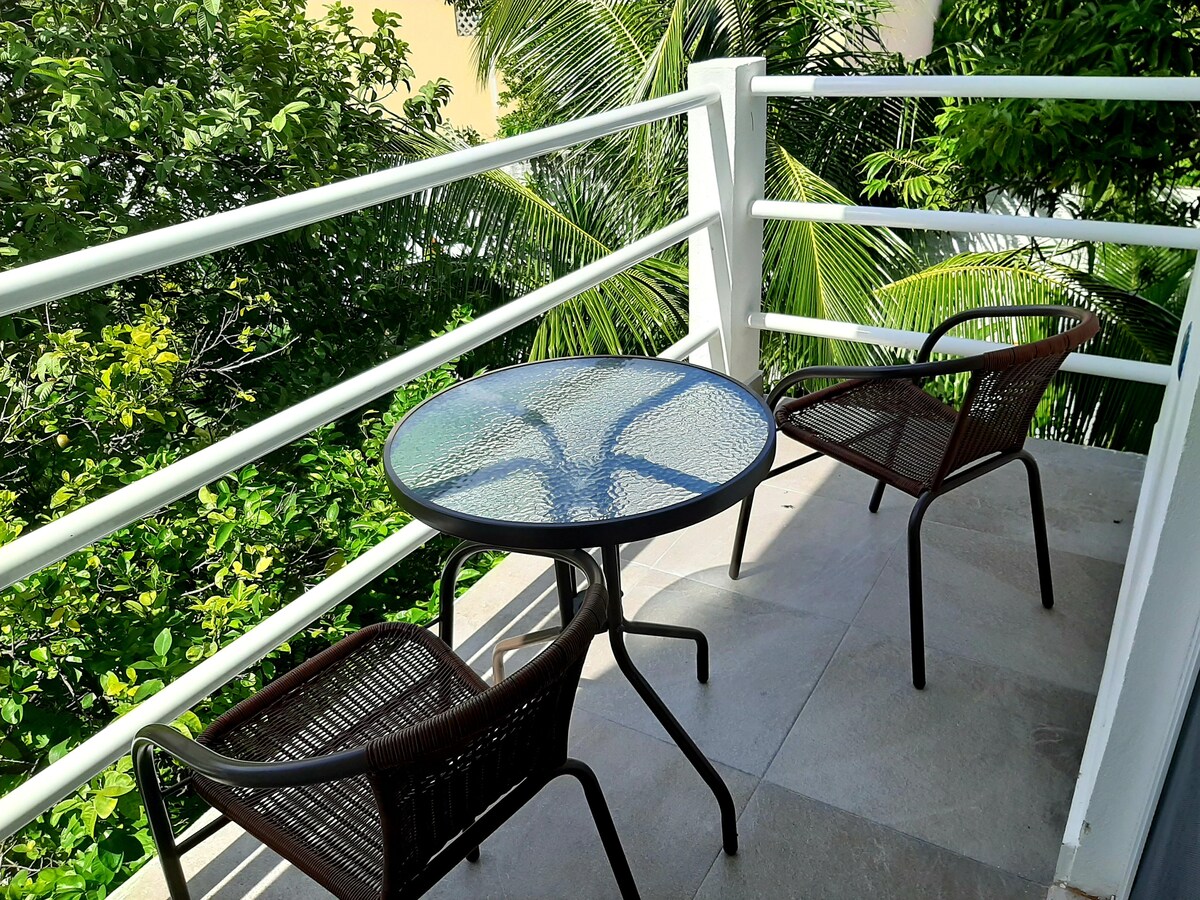 Mərkəzdəki əsas Bar və Restoranların yaxınlığında 5-ci prospektin ən vacib hissəsi olan 10-12 arası böyük ayrıca otaq. Faro çimərliyindən bir blok. Cozumel-i bilmək istəyirsinizsə, bərədən 6, ADO stansiyasından isə 5 blokdayıq. Mərkəzin mərkəzində olduğunuz müddətdə məkanda çoxlu bitki örtüyü və böyük ağaclar var. Digər istinadlar Cocobongo bir blokdan, Plaza Corazón isə yarım blokdan ibarətdir. Bu səbəbdən bu məkan çox sakit deyil.