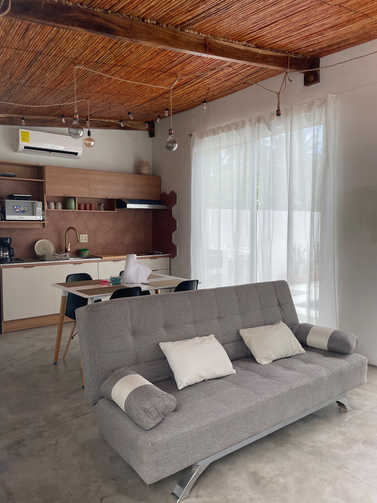 Experience our traditional Re-Imagine Salvadoran Style Villa, nestled in a private neighborhood, w/walking distance to El Palmarcito’s beach & saltwater pools. Perfect for Nature Lovers, away from noise while being close to Surf City's main attractions. With a simple charming semi-open design; this coastal retreat blends indoor comfort with the soothing presence of nature. Ideal for couples, families, friends, surf trips, or remote work, it offers an authentic cultural escape and relaxed vibes!