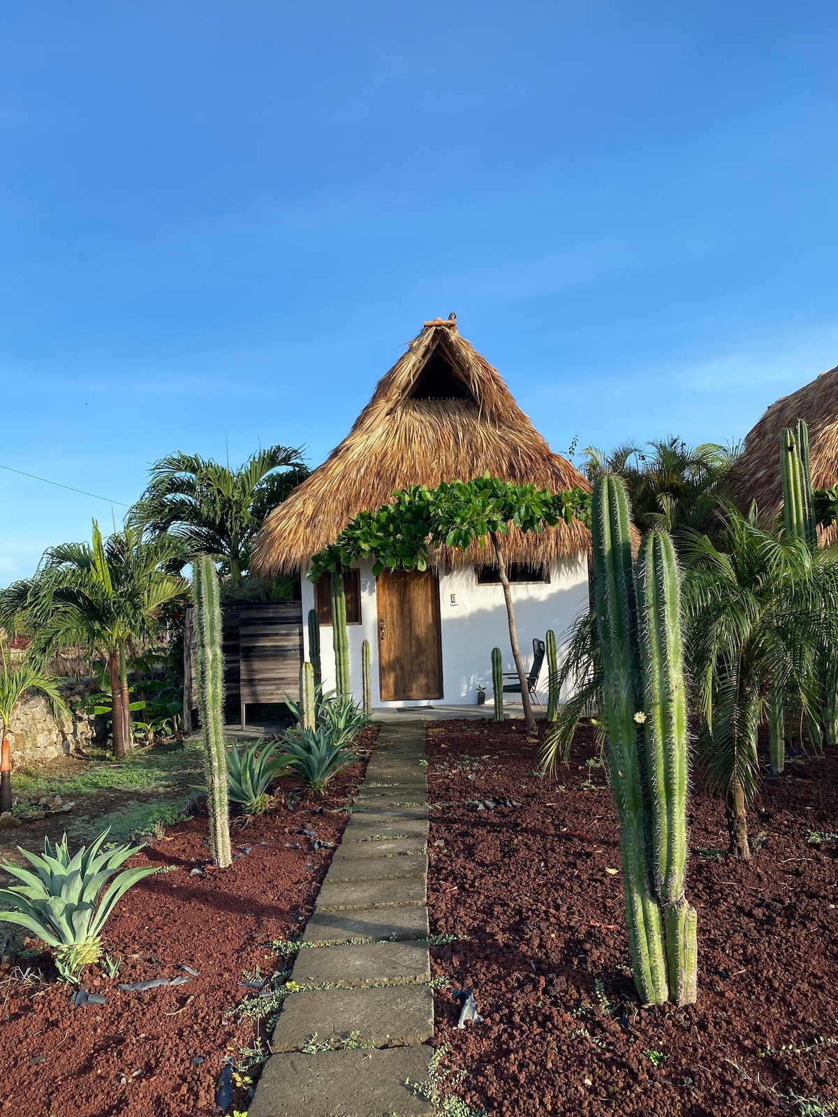 Cəngəlliyin çimərliyə qovuşduğu yer. Sahilə cəmi 5 dəqiqəlik piyada yol. Okeana baxan ilk təpənin üstündə. Maderas oynamaq üçün ən yaxın mənzil bizik! Bu rustik, yüngül studiya mənzilindən zövq alacaqsınız. Kompakt mətbəx + qonaq otağı var. Tropiklərdə özünüzü rahat hiss etməyiniz üçün çarpayı və hamam tamamilə örtülüb. Unutmayın ki, cəngəllikdəyik və qırıntılar bunun bir hissəsidir. Piknik masası və qamak stulu olan kiçik bir bağ var.
