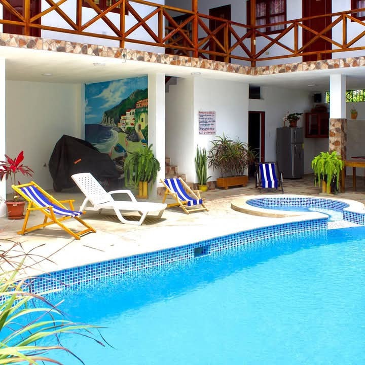 Otel çimərlikdən 70 m məsafədədir. Təfərrüatlara çox sevgi ilə yeni tikilib. Hər bir otaqda tualet və ilıq su ilə duş var. Qonaqlar okean mənzərəsi və ya qəbulu olan terrasda da qala bilər. Olon kənd mərkəzinə yaxın yerləşən otel rahatlıq və sakitlik təklif edir. Lakin gecə həyatından zövq almaq istəyirsinizsə, şənlik mili və regionun sörfinq cənnəti olan Montañitada avtomobillə 5 dəqiqəyə gedirsiniz. Alış-veriş də yaxınlıqdadır.