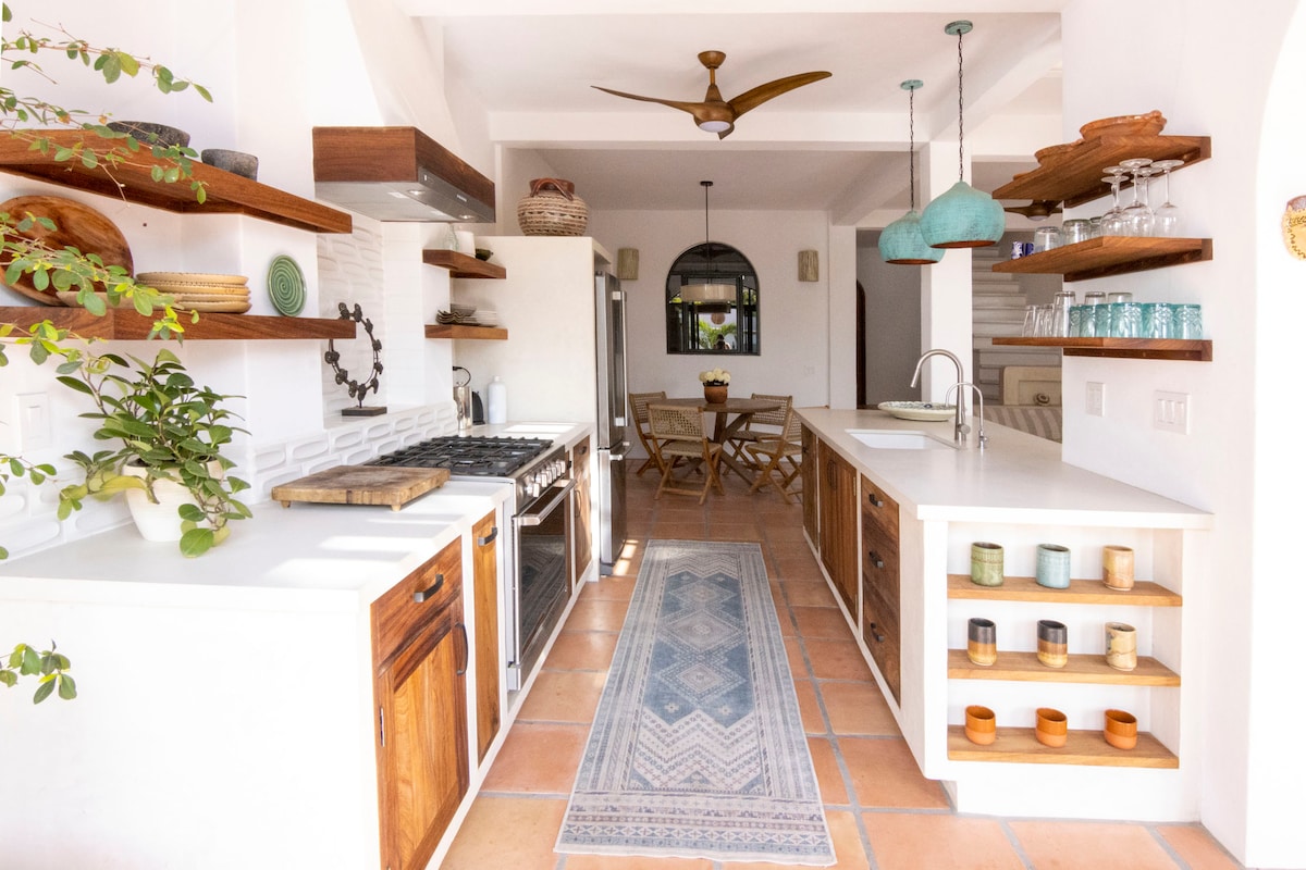 Romantic spacious one bedroom apartment with panoramic ocean views and a private heated pool in the tranquil north end of Sayulita *High speed wifi via Sayulitawifi * Smart TV *Air conditioning and ceiling fans *Kitchen with stove, oven, microwave, blender, coffeemaker and all utensils *Breathtaking panoramic views of the entire bay *King bed, pillowtop mattress *Parking for 1 vehicle *Interior soaking tub and exterior private heated pool *Spacious common area pool and grill *Gym and Yoga